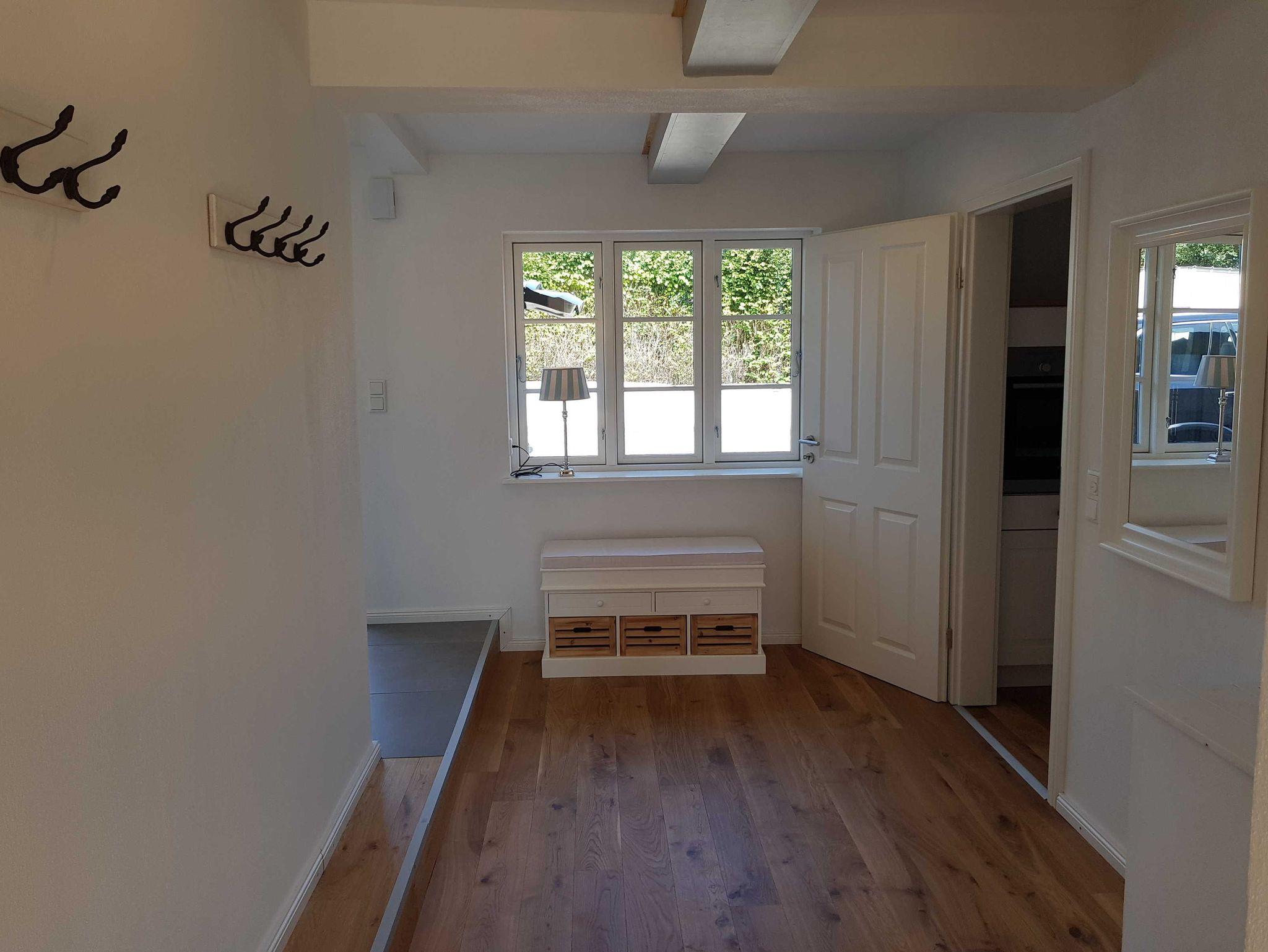 Das Ferienhaus Landhaus Norderfeld befindet sich im Erdgeschoss des charmanten historischen Reetdachhauses. Die offene Balkenlage,die Parkettböden in den Wohn- und Schlafbereichen und der gelungene Landhausstill bieten Komfort und Behaglichkeit.