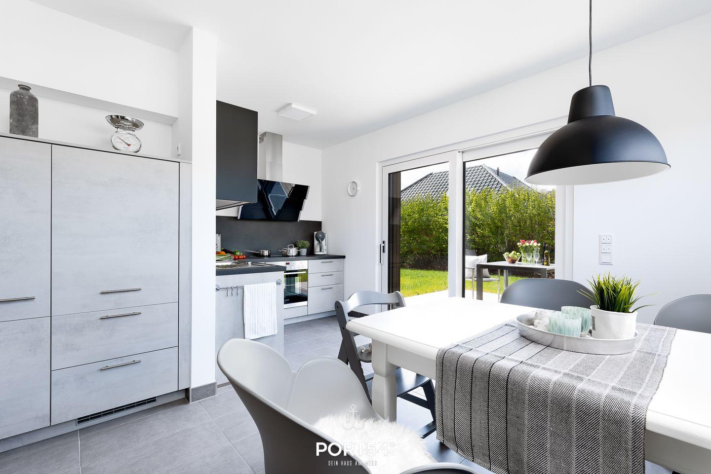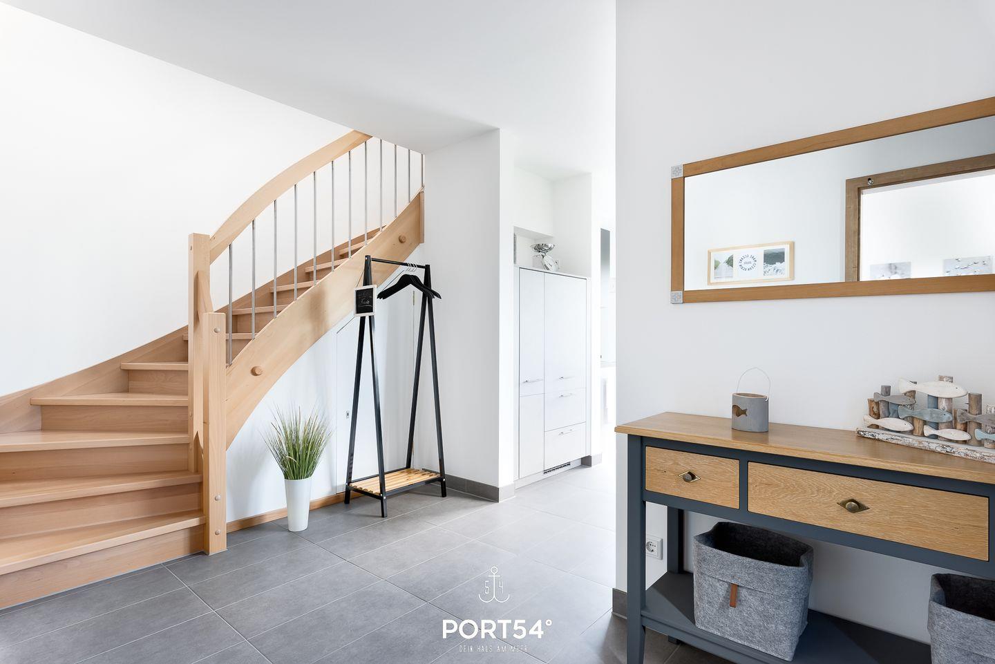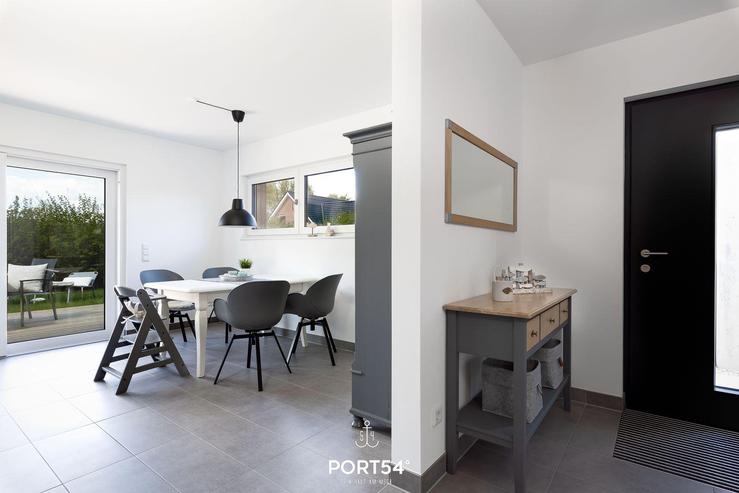 Bereits beim Betreten des Hauses empfängt Dich ein einladender Eingangsbereich mit Garderobe, der Dich direkt in die offene Küche führt.