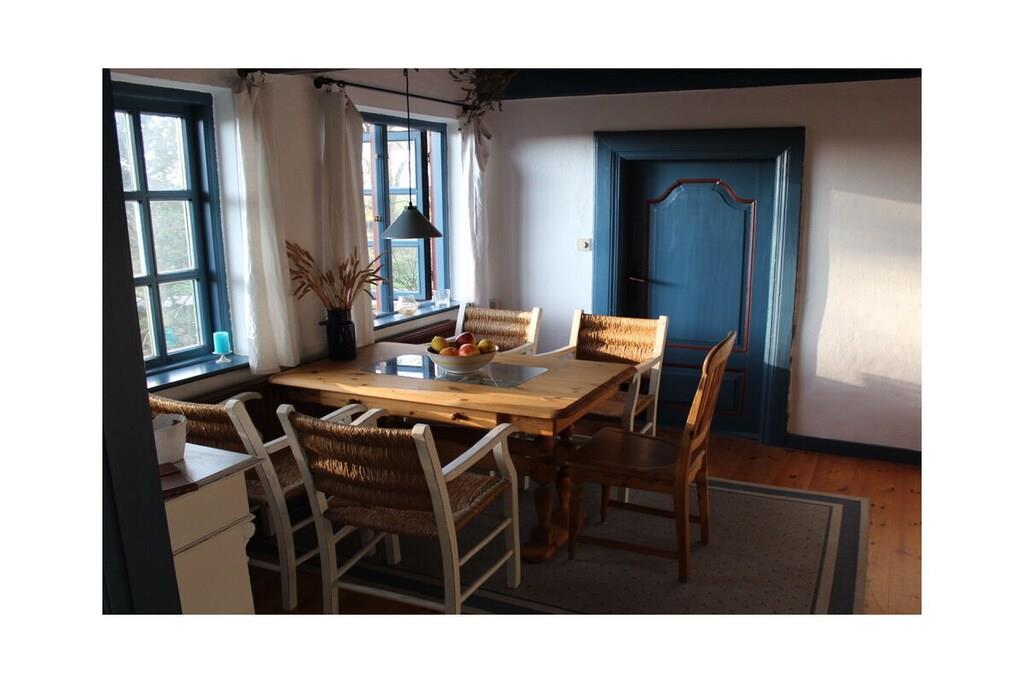 Das historische Reetdach Landhaus verzaubert von dem ersten Moment an mit dem urgemütlichen Charme. Die geräumigen Wohnküche mit einem Kaminofen und viel historischen Einrichtungsgegenständen ist einer der beliebtesten Treffpunkte für die ganze Familie. Aber auch das lichtdurchflutete Wohnzimmer, wo am Nachmittag bis zu den Abendstunden die Sonne hineinscheint ist ein schöner Rückzugsort. Der Garten mit altem Baumbestand und schönen Obstbäumen lädt zum Verweilen ein. Falls zusätzliche Gäste über 4 Personen hinaus dazukommen sollten kann das auch auf Nachfrage eingerichtet werden. Fahrräder (1x Herren- + 1x Damenfahrrad + 2 Kinderfahrräder) sind vor Ort vorhanden und können kostenlos mitbenutzt werden.