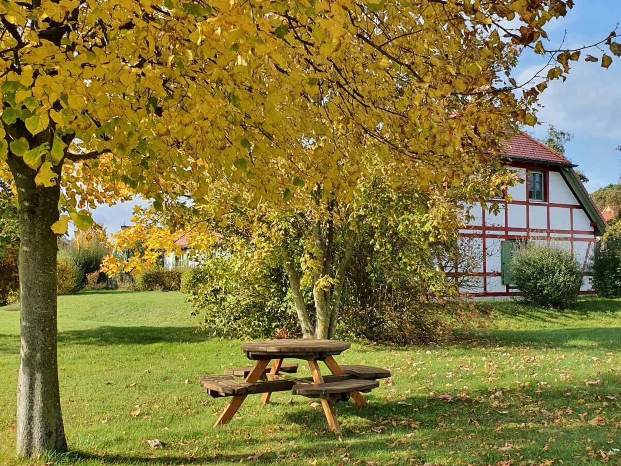 Die weitläufig angelegten Außenanlagen können mit genutzt werden. Spielplätze, Bolzplatz, Volleyballfeld, Tischtennisplatten, Minigolf, Fahrradverleih und Restaurant sind in der Ferienanlage vorhanden, ein Dorfladen mit Brötchenverkauf ist in wenigen Gehminuten erreichbar.