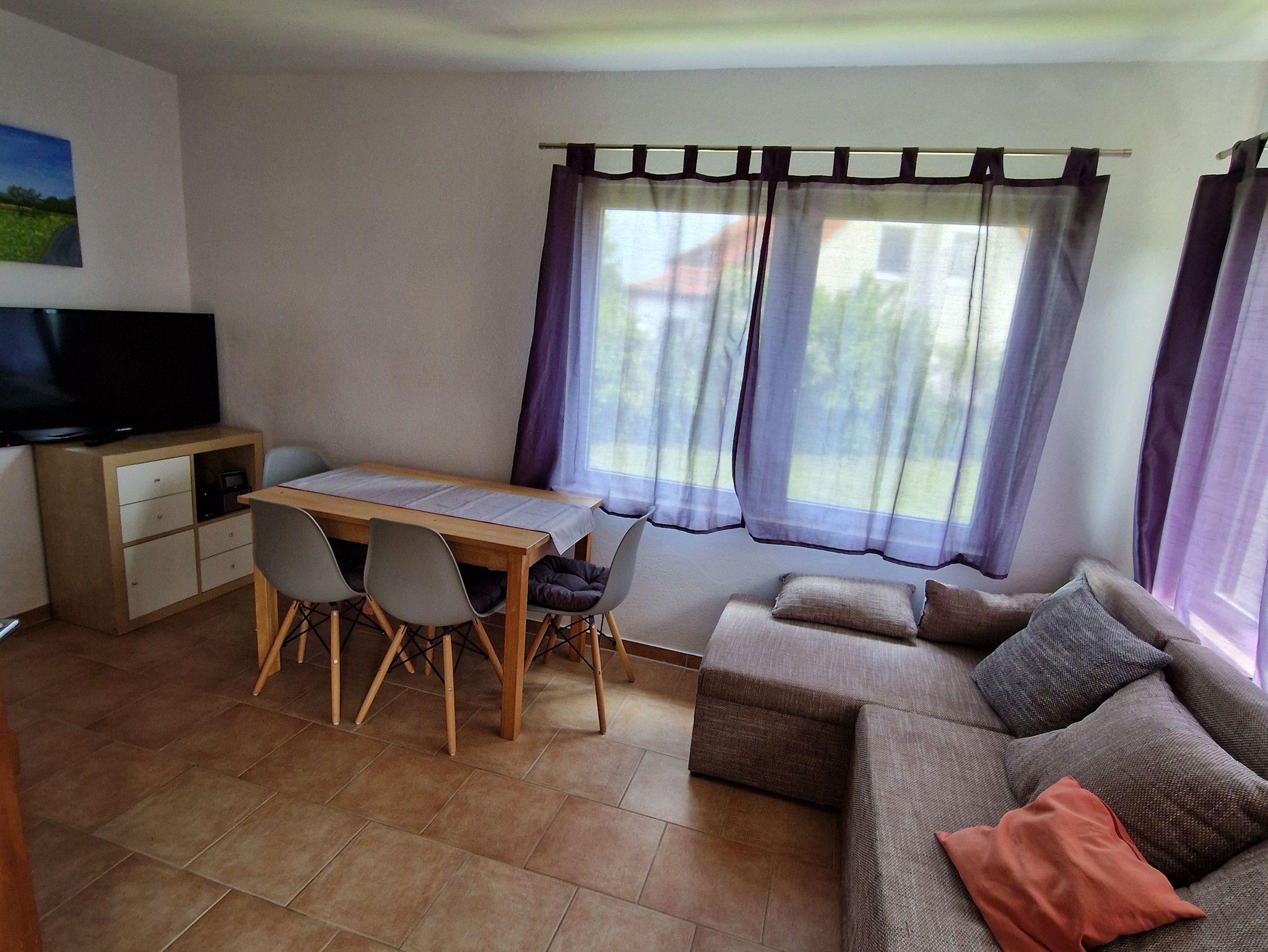 Neben einem Wohnzimmer, 2 Schlafzimmern, einer Küche, Bad mit DU und WC verfügt es über eine großzügige Terrasse mit Liegewiese und einem PKW Stellplatz.