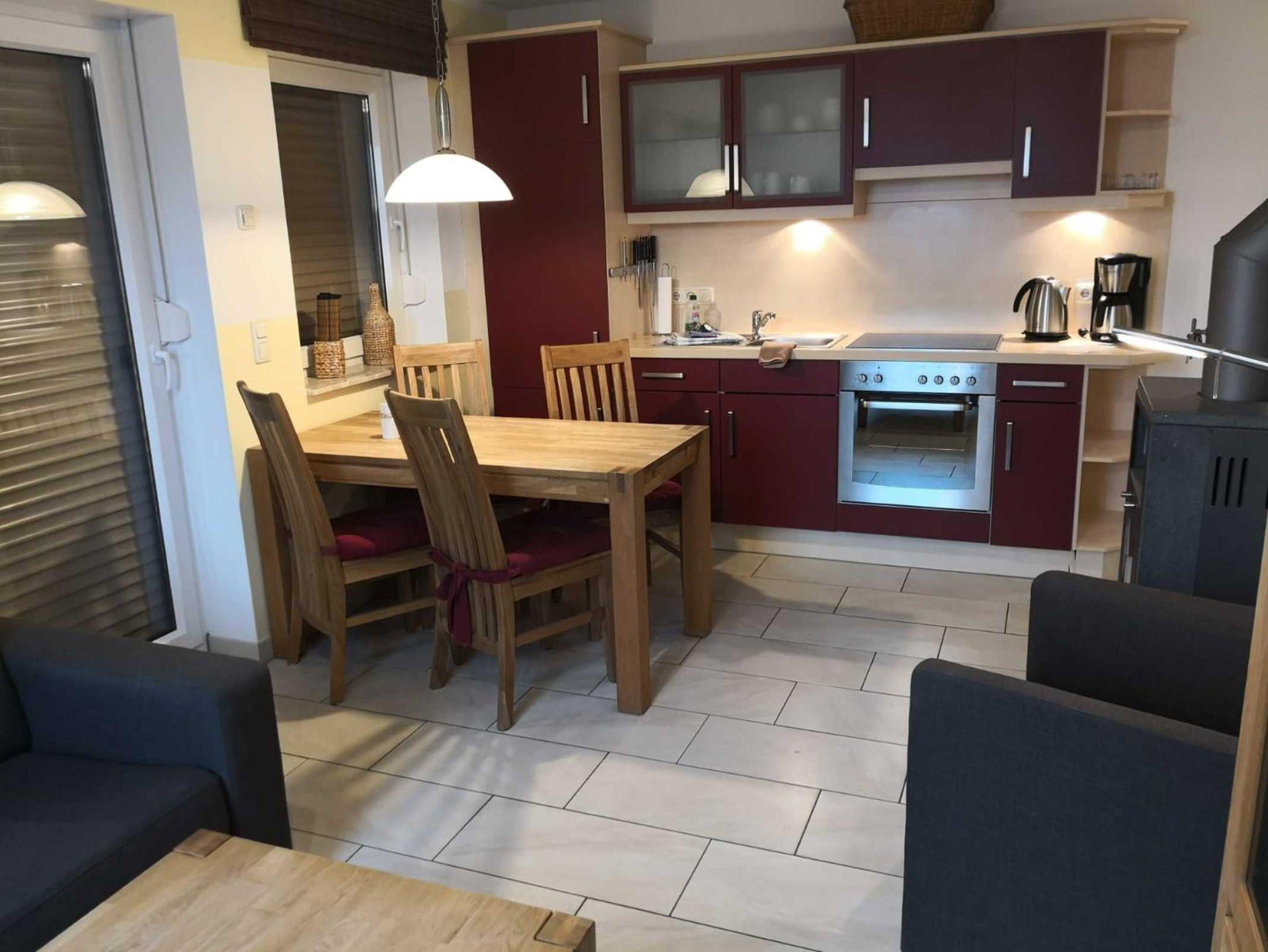 Unsere Nichtraucherwohnungen verfügen über einen großen Wohnraum mit integrierter Küche, Balkon oder Terrasse und separate, Schlafzimmer. Die Wohnungen haben Fußbodenheizung und für gemütliche Abende einen Kaminofen sowie einen Grillplatz und PKW-Stellplatz. Die Küchenzeile im Koch-Wohnbereich verfügt über alles, um sich im Urlaub selbst zu versorgen.