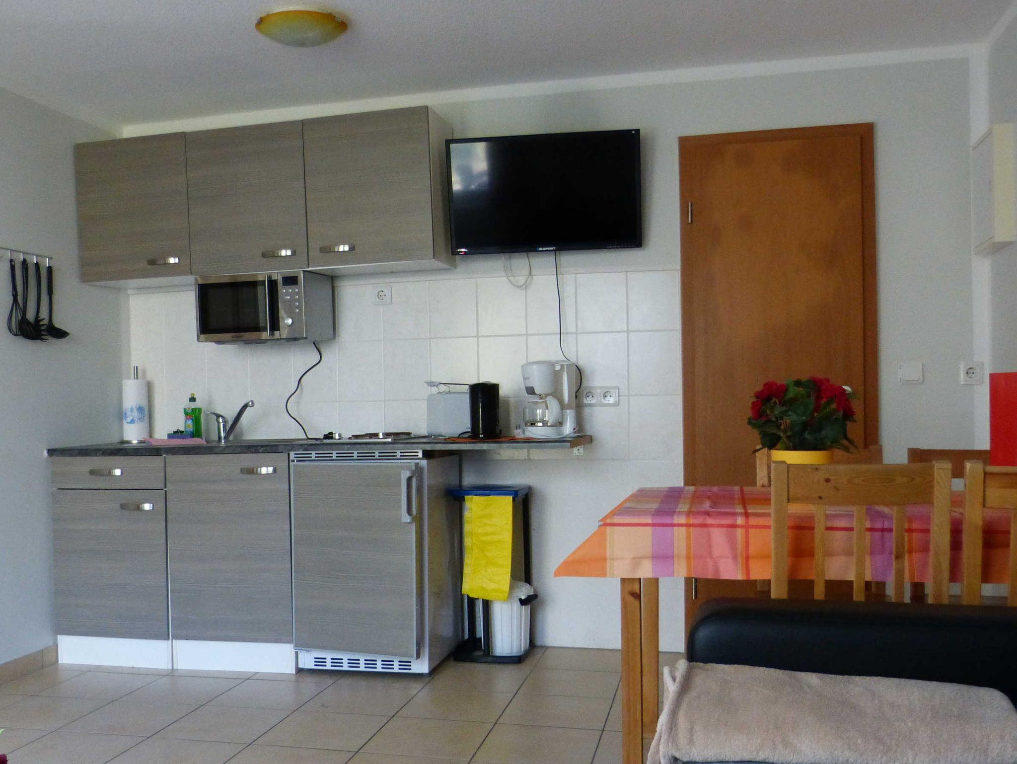 Die Ferienwohnung liegt im Erdgeschoß, hat eine Größe von 36 m² und verfügt über einen Wohnraum mit Pantry, zwei Schlafzimmer mit je einem Doppelbett ein Badezimmer und eine Terrasse. Im Wohnzimmer ist zudem eine Aufbettung möglich (Schlafsofa). In der Miniküche befinden sich zwei Kochplatten, eine Kaffemaschine, ein Wasserkocher, ein Toaster, ein Kühlschrank mit Gefrierfach sowie eine Mikrowelle. Wäsche kann zugebucht werden (Handtuch- Bettwäschepaket 25,00 pro Person). Im Ferienpark kann ein Grill gemietet werden, ebenso ist die Nutzung einer gemeinschaftlichen Waschmaschine möglich (gegen Gebühr).