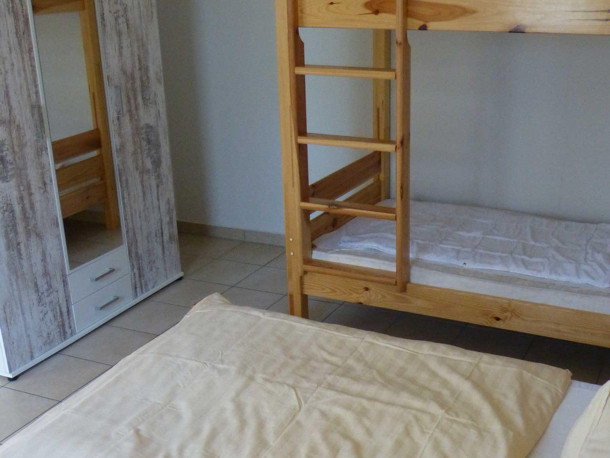 Die Ferienwohnung liegt im Erdgeschoß, hat eine Größe von 37 m² und verfügt über einen Wohnraum mit Pantry, ein Schlafzimmer mit einem Doppel- und einem Etagenbett, ein Badezimmer und eine Terrasse. Im Wohnzimmer befindet sich ein weiteres Einzelbett, zudem ist eine Aufbettung möglich (Schlafsofa). In der Miniküche befinden sich zwei Kochplatten, eine Kaffemaschine, ein Wasserkocher, ein Toaster, ein Kühlschrank mit Gefrierfach sowie eine Mikrowelle. Wäsche kann zugebucht werden (Handtuch- Bettwäschepaket 25,00 pro Person). Im Ferienpark kann ein Grill gemietet werden, ebenso ist die Nutzung einer gemeinschaftlichen Waschmaschine möglich (gegen Gebühr).
