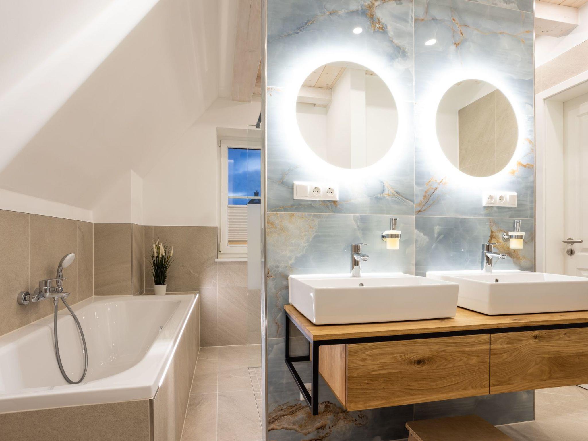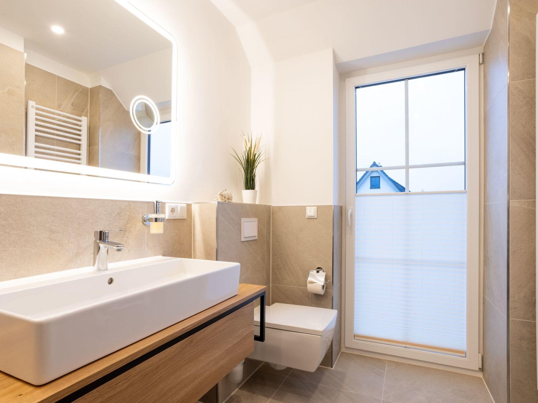 Mit Platz für bis zu sechs Personen bietet das Haus zwei komfortable Schlafzimmer mit eigenem Bad sowie ein zusätzliches Kinderzimmer. Fußbodenheizung, WLAN, hochwertige Möbel mit nordisch-maritimem Flair und viele praktische Extras – von Waschmaschine und Trockner bis zur Bluetooth Box für individuellen Musikgenuss – sorgen für höchsten Komfort.