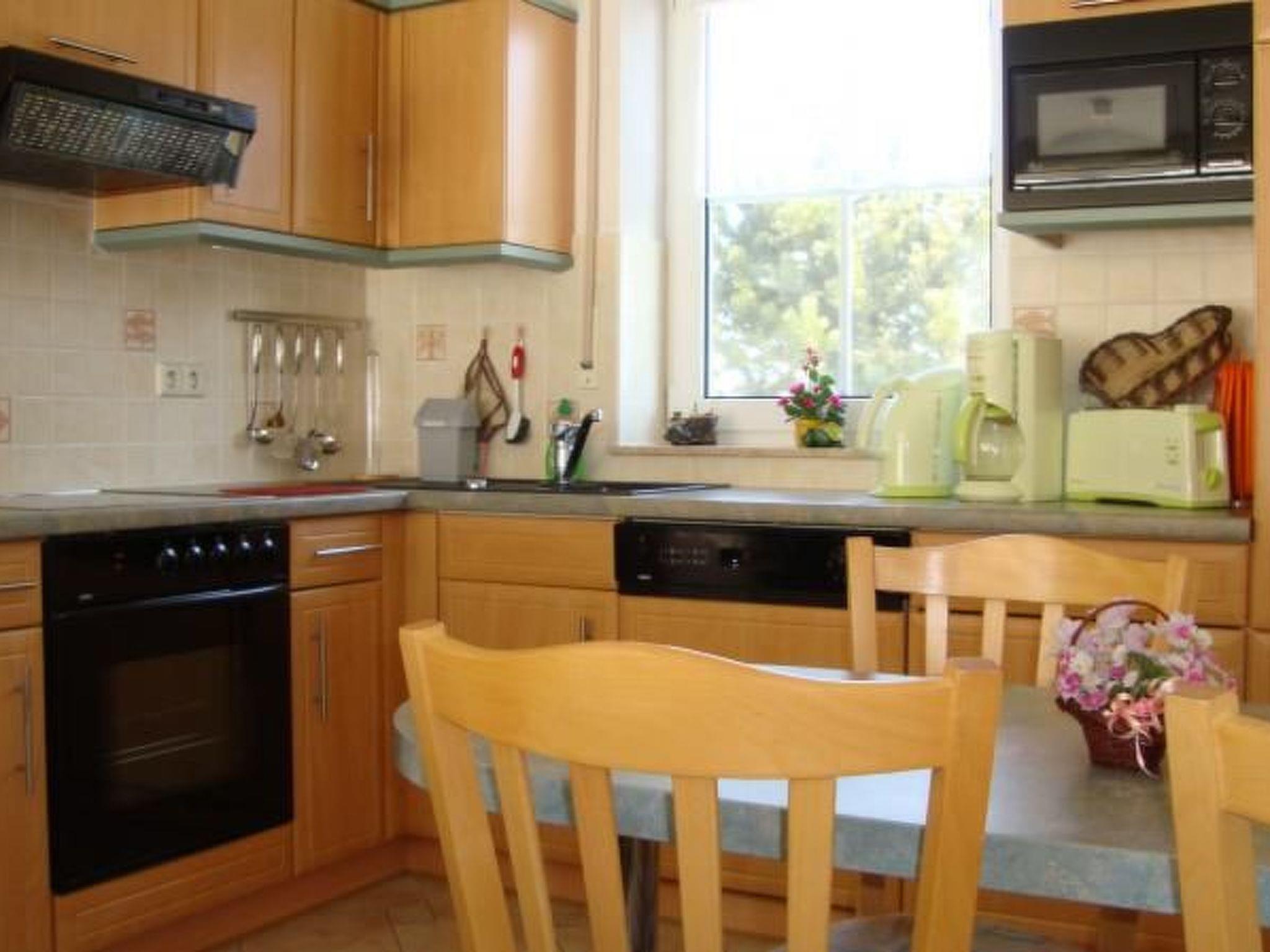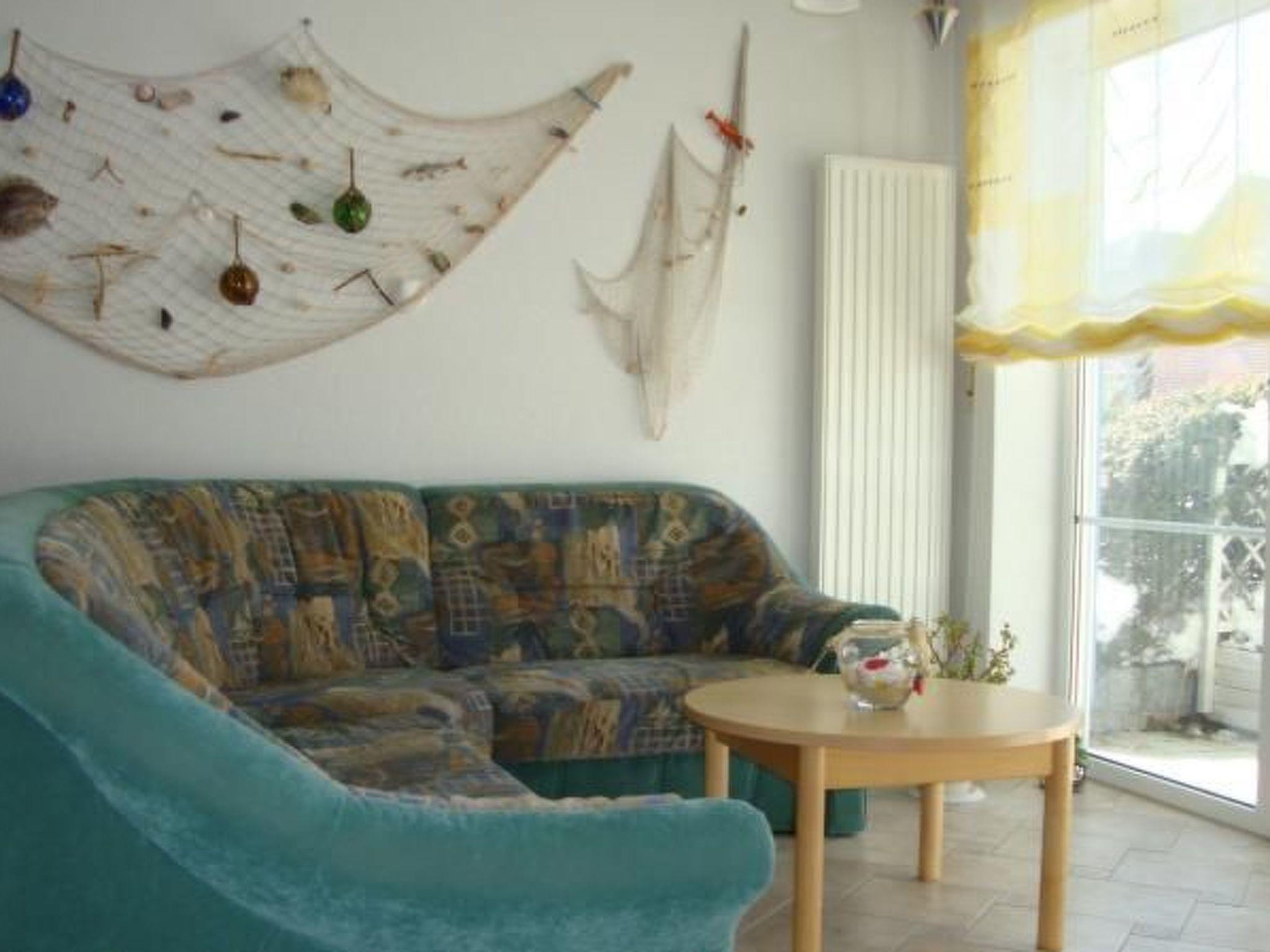 Die Ferienwohnung liegt im Erdgeschoss eines modern eingerichteten Einfamilienhauses, das im Jahre 2001 fertiggestellt und 2016 zuletzt renoviert wurde. Sie bietet allen Komfort für einen erholsamen Urlaub auf der größten Insel Deutschlands. Die Ferienwohnung ist gemütlich und geschmackvoll in einem maritimen Stil eingerichtet. Mit dem Schritt durch die Haustür betreten Sie den Hausflur und gelangen direkt zum Wohnungseingang. Auf einer Wohnfläche von 65 m² zweigen ein bequemer Wohn- und Essbereich mit integrierter Küche, ein Schlafzimmer mit Doppelbett, ein Kinderzimmer mit Etagenbett und ein Tageslichtduschbad vom Wohnungsflur ab. Im ersten Schlafzimmer schlafen Sie in einem großzügigen Polsterbett einer Maße von 180 cm x 200 cm, das von zwei Nachttischen mit Leselampen umgeben ist. Ein doppeltüriger Kleiderschrank und ein Regal sorgen für Verstauungsmöglichkeiten Ihrer Reisegarderobe. Das zweite Schlafzimmer eignet sich ideal als Kinderzimmer und ist mit einem Doppelstockbett mit zwei übereinander liegenden Schlafmöglichkeiten einer Maße von 90 cm x 200 cm ausgestattet. Daher ist noch genügend Platz für zwei Schreibtische, einen Kleiderschrank und Spielfläche auf dem Boden vorhanden. Ein wandmontierter Flachbildfernseher und ein Radio sind ebenfalls vorhanden. Im Badezimmer ist eine Duschkabine, ein unterbauter Waschtisch, ein WC, ein Handtuchtrockner und ein Badezimmerfenster vorhanden. Herzstück der Wohnung ist der großzügige Wohn- und Essbereich mit offener Küche. Die gepolsterte Eckcouch lädt bis zu vier Personen zum gemeinsamen Entspannen nach einem Tagesausflug ein. Dabei sorgen ein Flachbildfernseher mit Sat.-TV sowie eine Stereoanlage mit Radio und CD-Player für Unterhaltung am Abend. Vor der Couch befindet sich der Esstisch, an dem vier Personen zu einer selbstzubereiteten Mahlzeit Platz nehmen können. Umgeben von der voll ausgestatteten Eckküche, die über einen Herd mit Vierzonen-Cerankochfeld und Backofen, einen Kühlschrank mit Gefrierfach, eine Geschirrspülmaschine sowie die üblichen Kleinelektrogeräte wie Mikrowelle, Wasserkocher, Kaffeemaschine und Toaster verfügt, wird Ihnen eine komfortable und umfangreiche Selbstversorgung ermöglicht. In den Raum, der Zugang zur Terrasse bietet, gelangt angenehm viel Tageslicht durch die Fensterfront mit den verglasten Terrassentüren. Des Weiteren ist im Flur eine Garderobe und ein Schuhschrank vorhanden. Alle Fenster sind mit Insektenschutz und Außenjalousien ausgestattet.