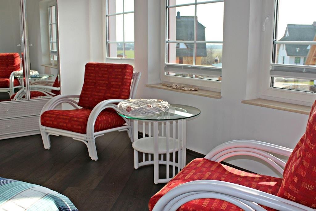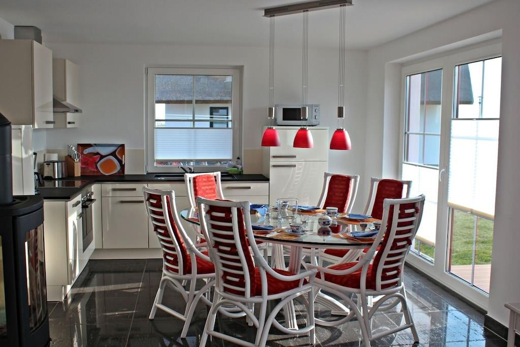 Das sehr komfortable, direkt am Meer gelegene Reetdachhaus Meeresrauschen wurde im Sommer 2013 eröffnet und bietet eine wunderbare Aussicht auf das Meer und zur Insel Hiddensee. Das Ferienhaus Meeresrauschen wurde als Doppelhaus konzipiert und verfügt über 2 getrennte Wohneinheiten bzw. Doppelhaushälften. Sie bieten allen erdenklichen Komfort wie Kamin, Einbauküche mit Geschirrspüler, Fußbodenheizungen in den Bädern, Essplatz und moderne Couchecke, LCD-TV, Gartenmöbel, Fahrräder, Grill und vielem weiteren. Kostenfreies WLAN ist selbstverständlich.