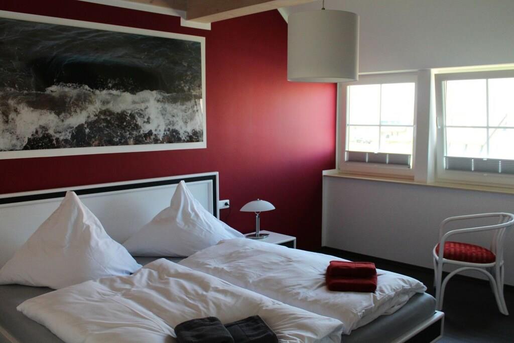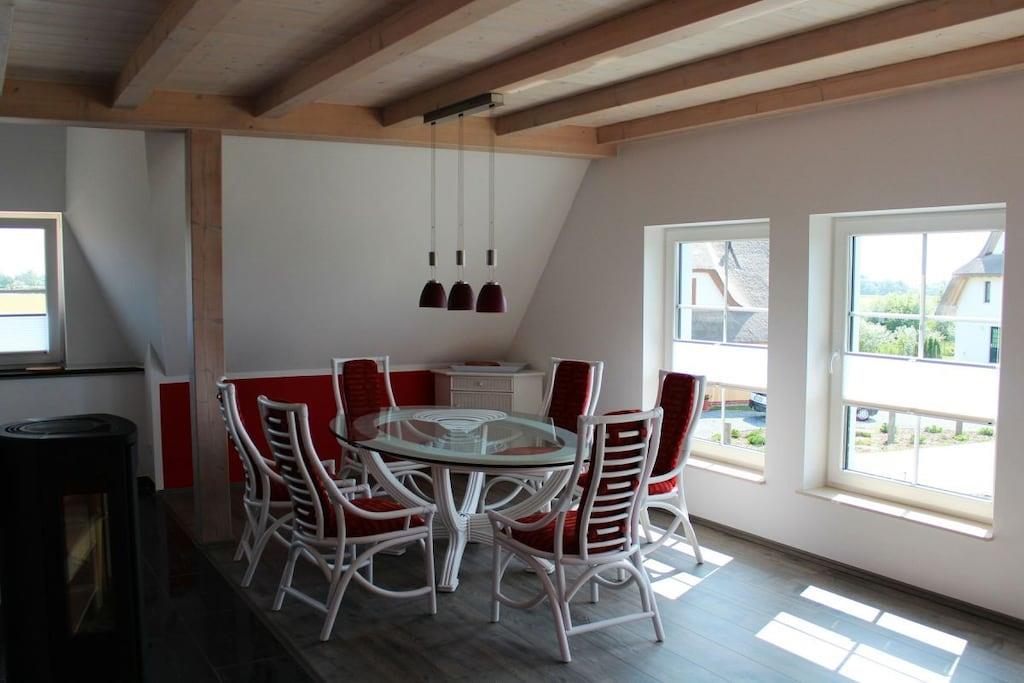 Moderne Ferienwohnung Seeadler mit Meerblick, Kamin und Garten in Dranske, ideal für 4 Personen.