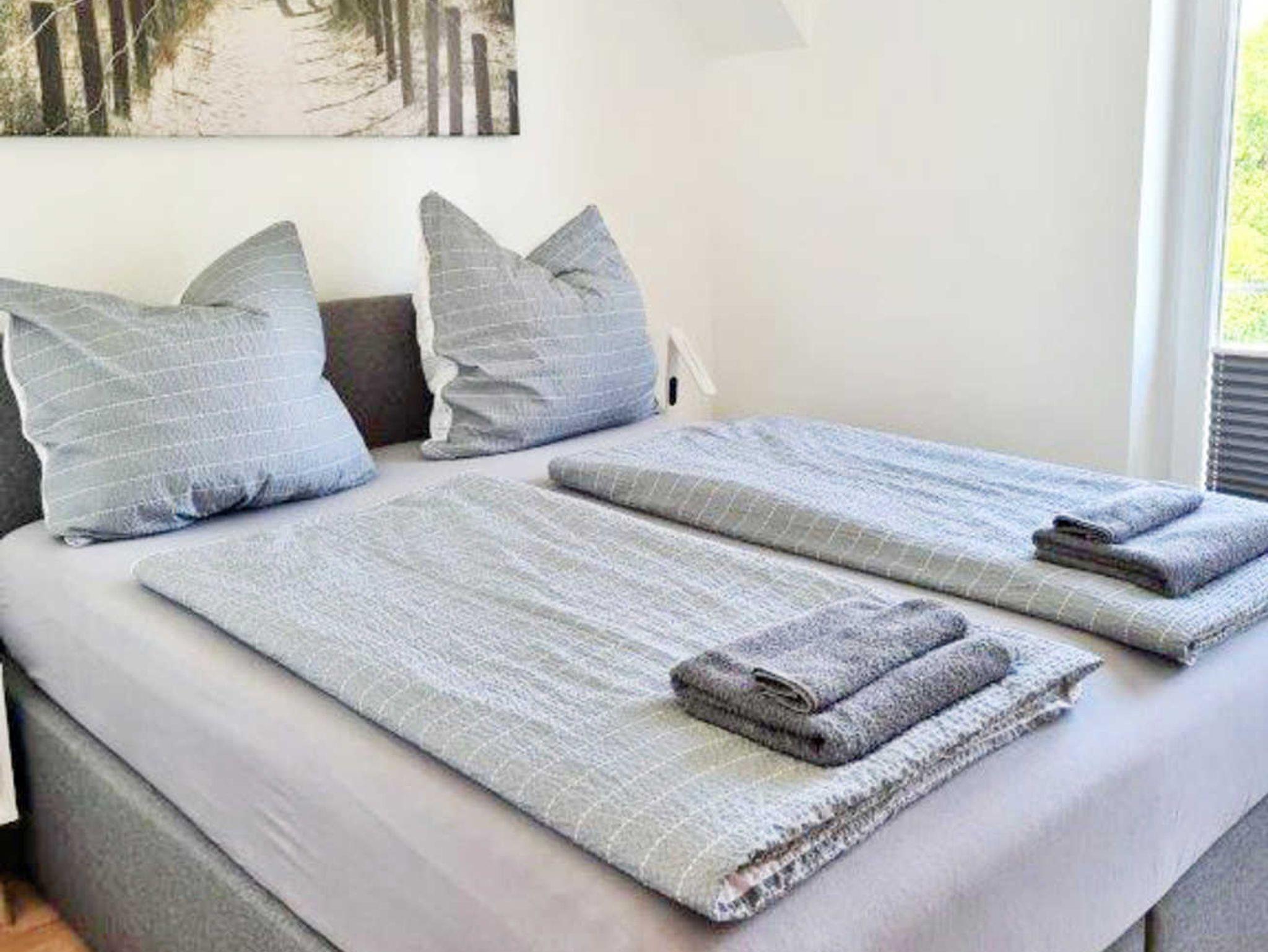 Das erste Schlafzimmer ist mit einem bequemen Doppel-Boxspringbett mit Nachttischen und Leselampen sowie einem Kleiderschrank ausgestattet. Im zweiten Schlafzimmer stehen zwei Einzelbetten mit Nachttisch und Leselampe, eine Schlafcouch 1,40 m breit, sowie eine Kommode.