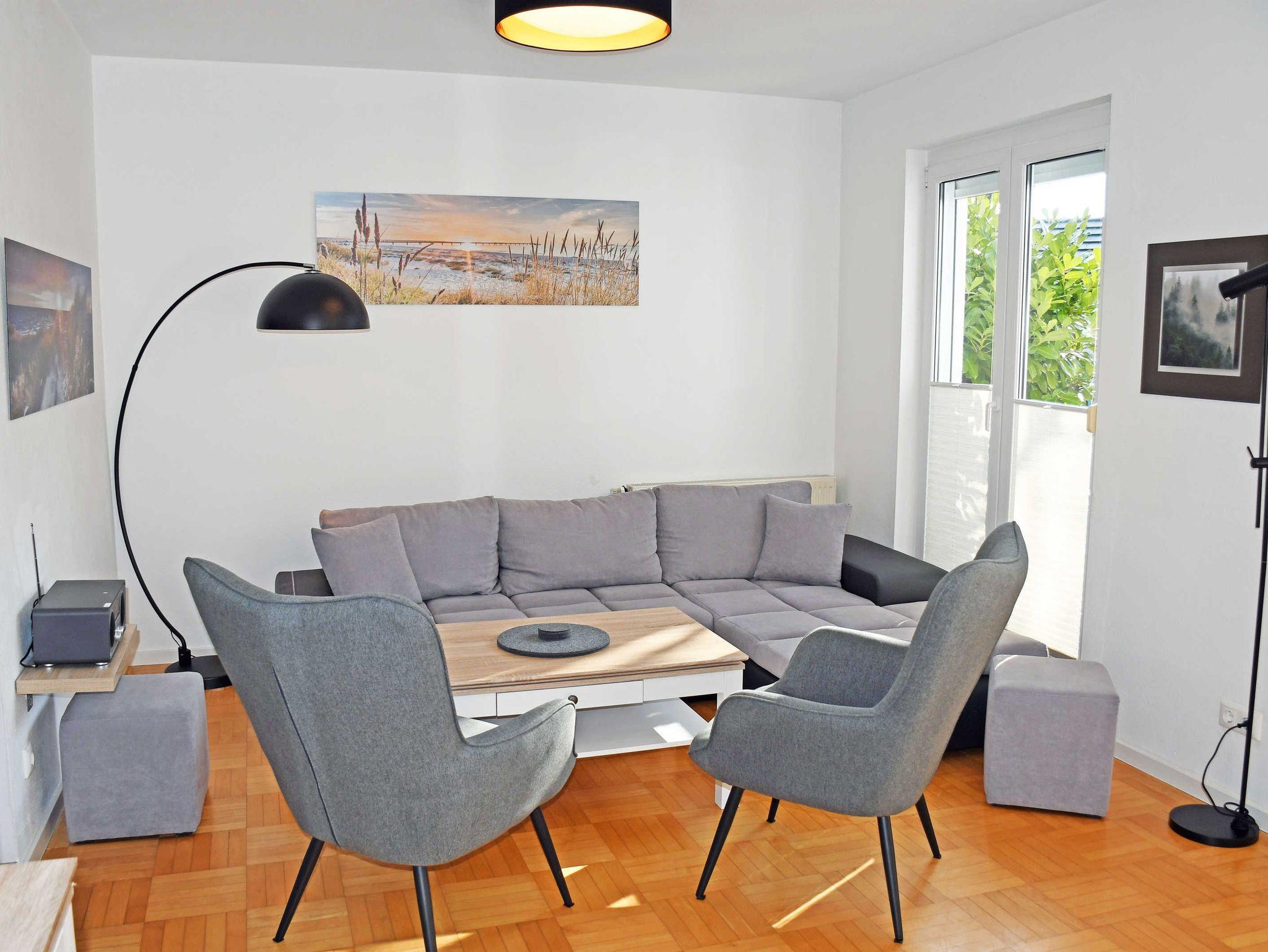 Moderne Ferienwohnung in Dranske, nur 150 m vom Bodden und nahe feinem Sandstrand, mit Terrasse und WLAN.