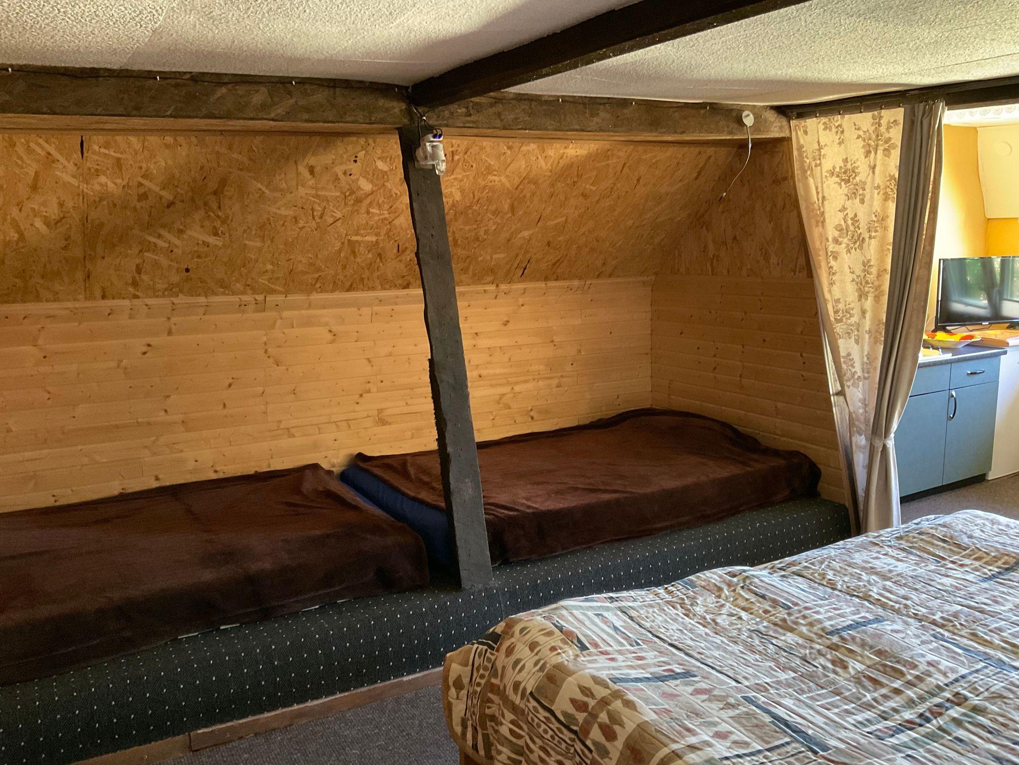 - 1 Wohn-/ Schlafzimmer mit Doppelbett und 2 Einzelbetten, sowie Küchenzeile