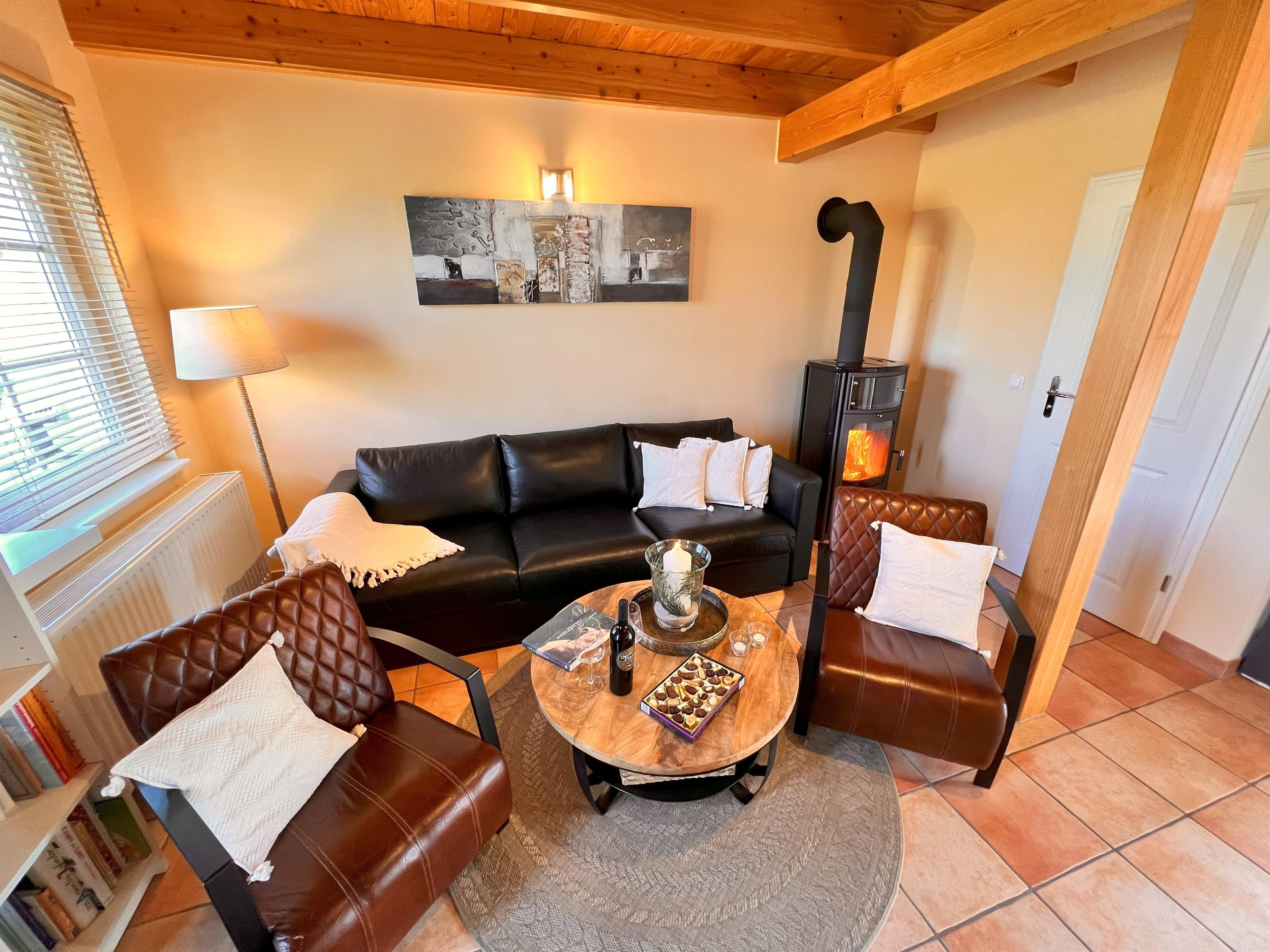 Bad. Die Wohnungen sind ausgestattet mit Polstermöbeln, Kamin, Sat-TV, DAB+ Radio,