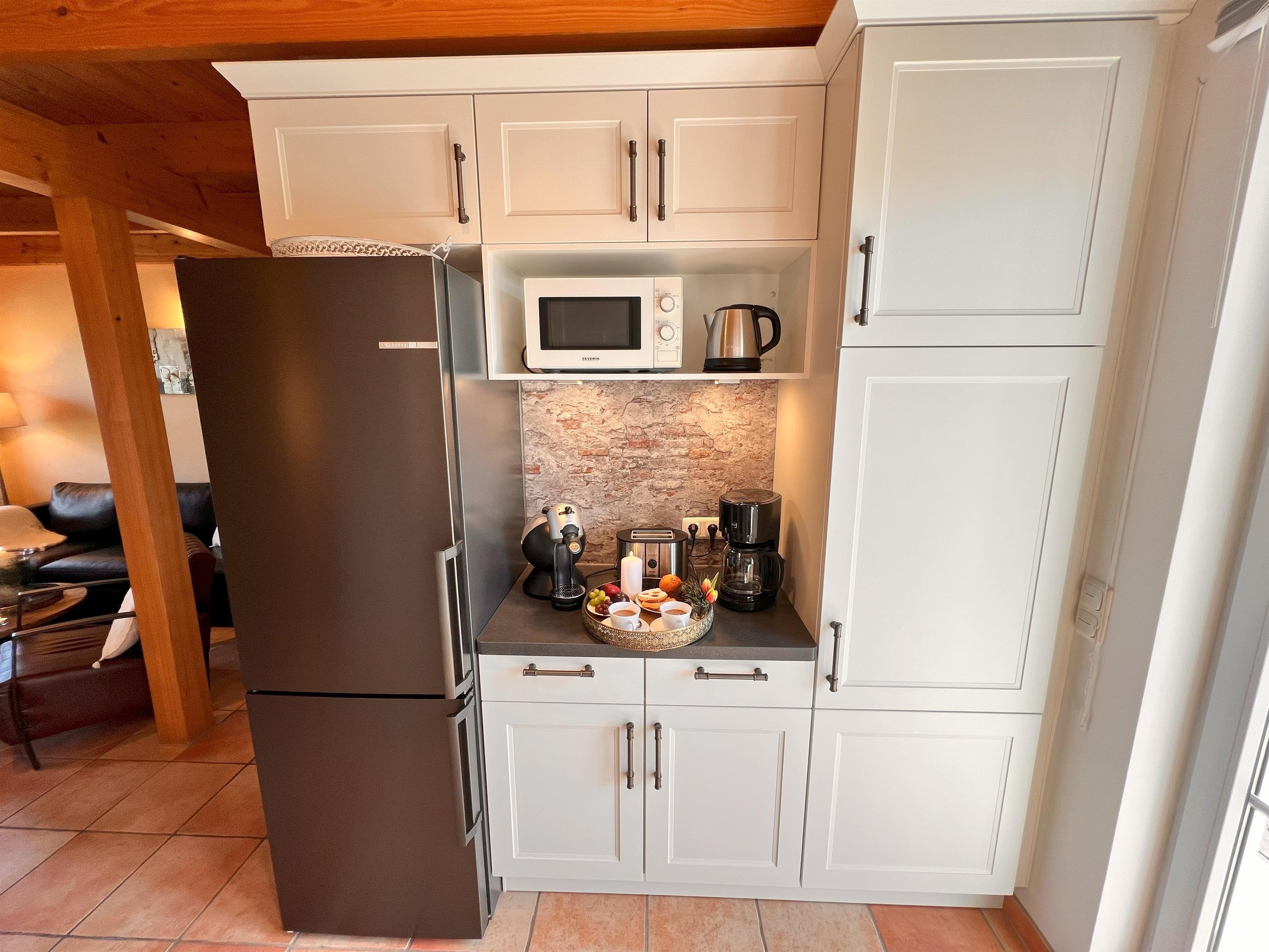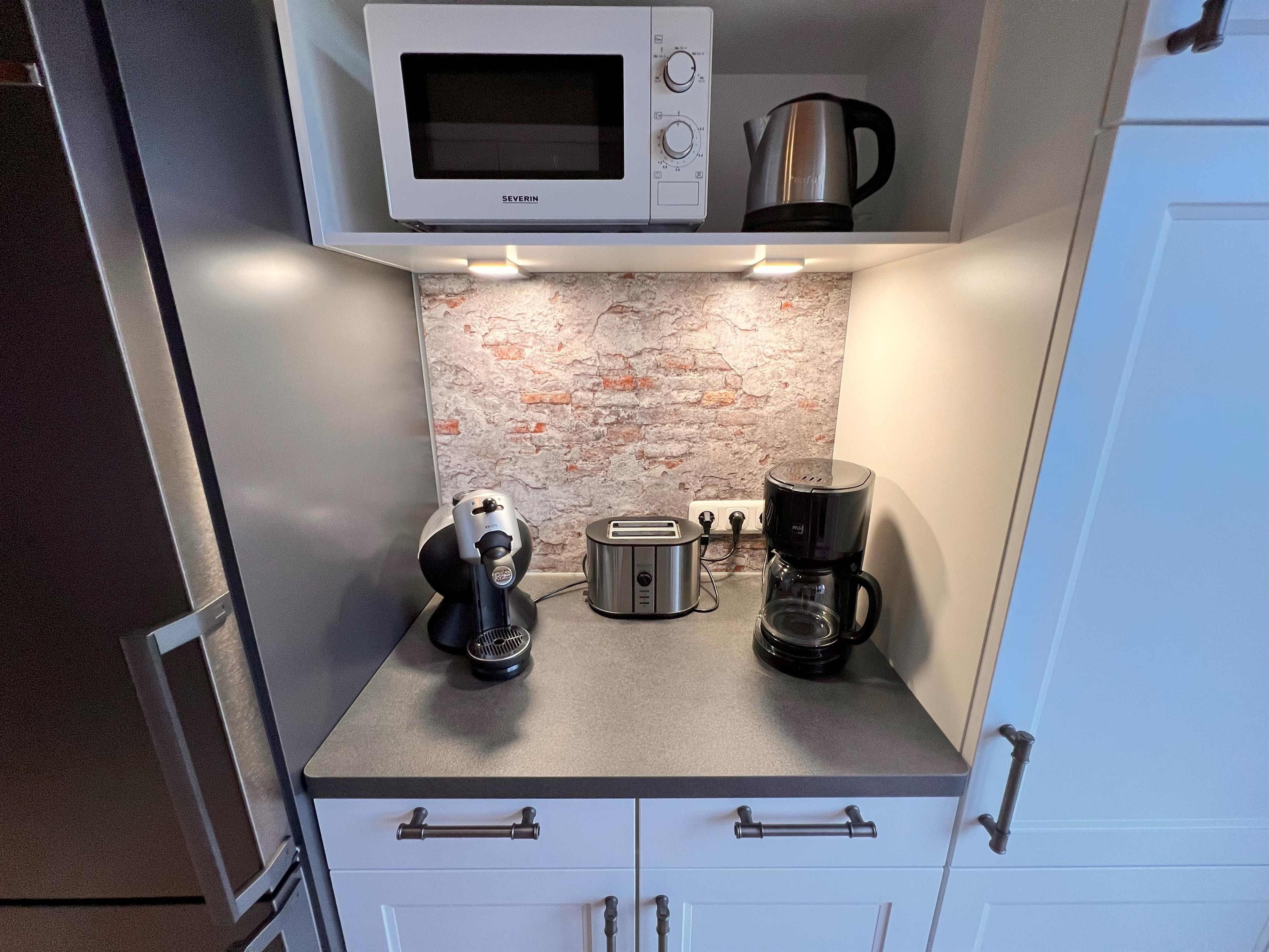Toaster, Kaffeemaschine, Wasserkocher, Geschirrspüler, Mikrowelle, Geschirr und vieles mehr..