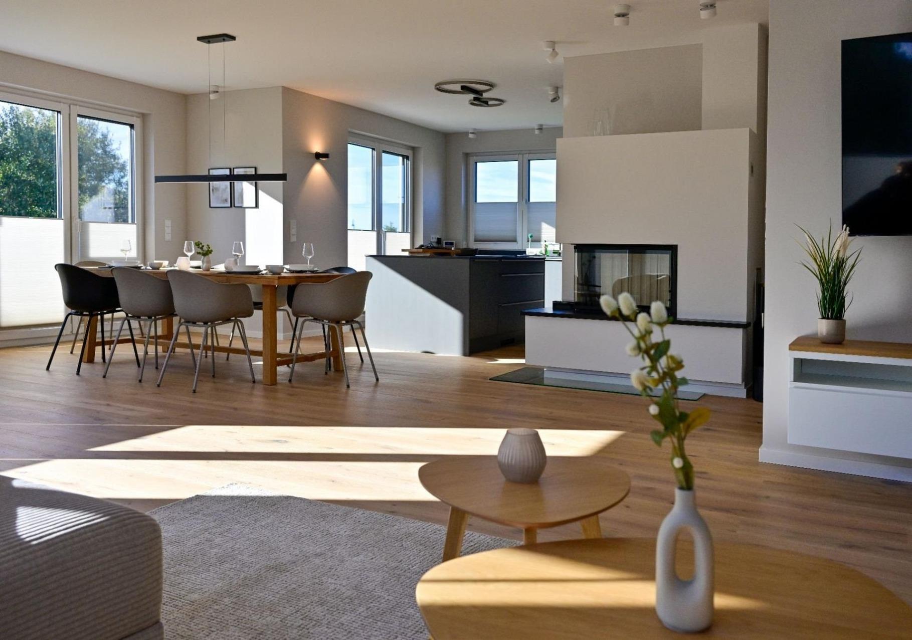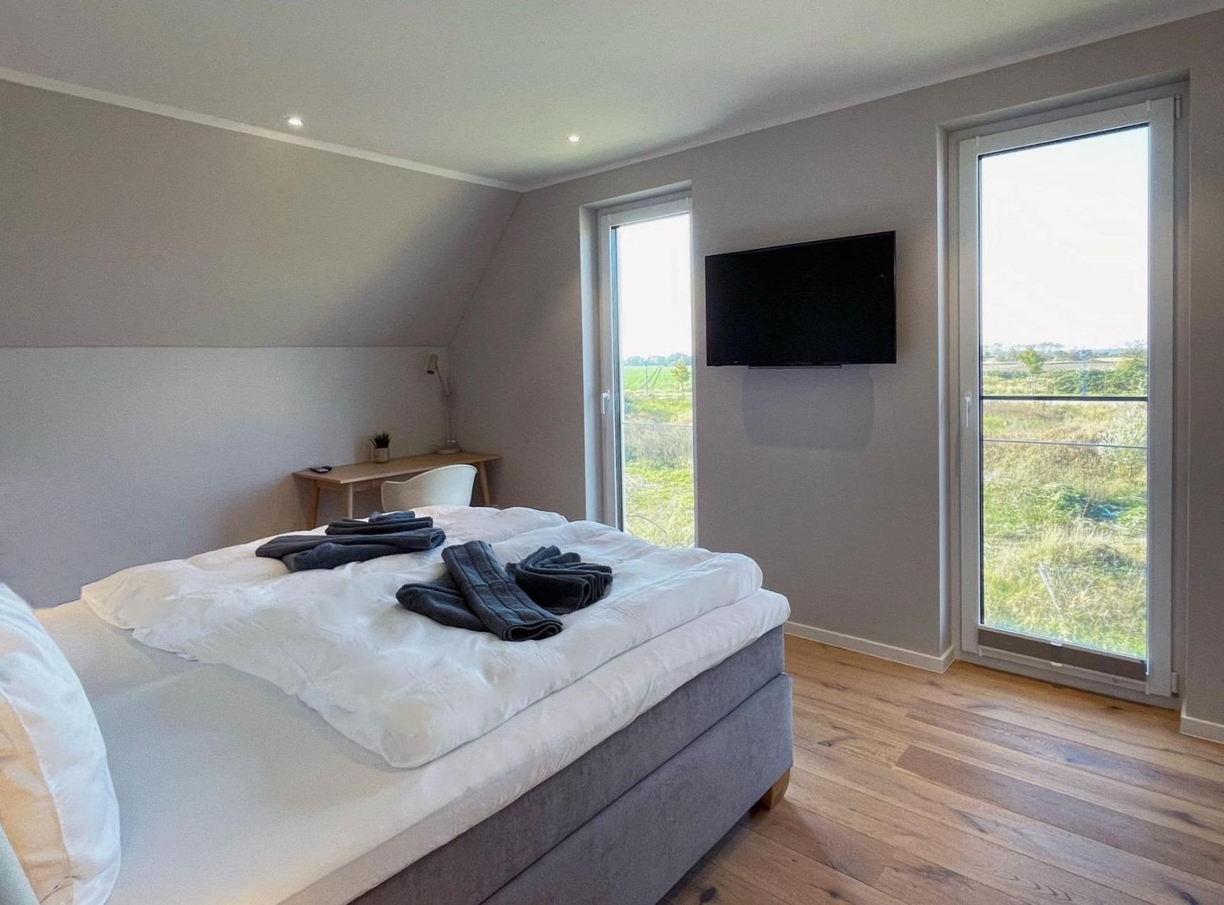 Unser luxuriöses Ferienhaus wurde im Sommer 2024 fertiggestellt und bietet auf 185 Quadratmetern Platz für bis zu 8 Personen. Eingebettet zwischen Bodden und Meer, liegt das Reetdachhaus auf einem großzügigen 1100 Quadratmeter großen Grundstück und bietet Ihnen eine ideale Kombination aus Komfort und Naturerlebnis.