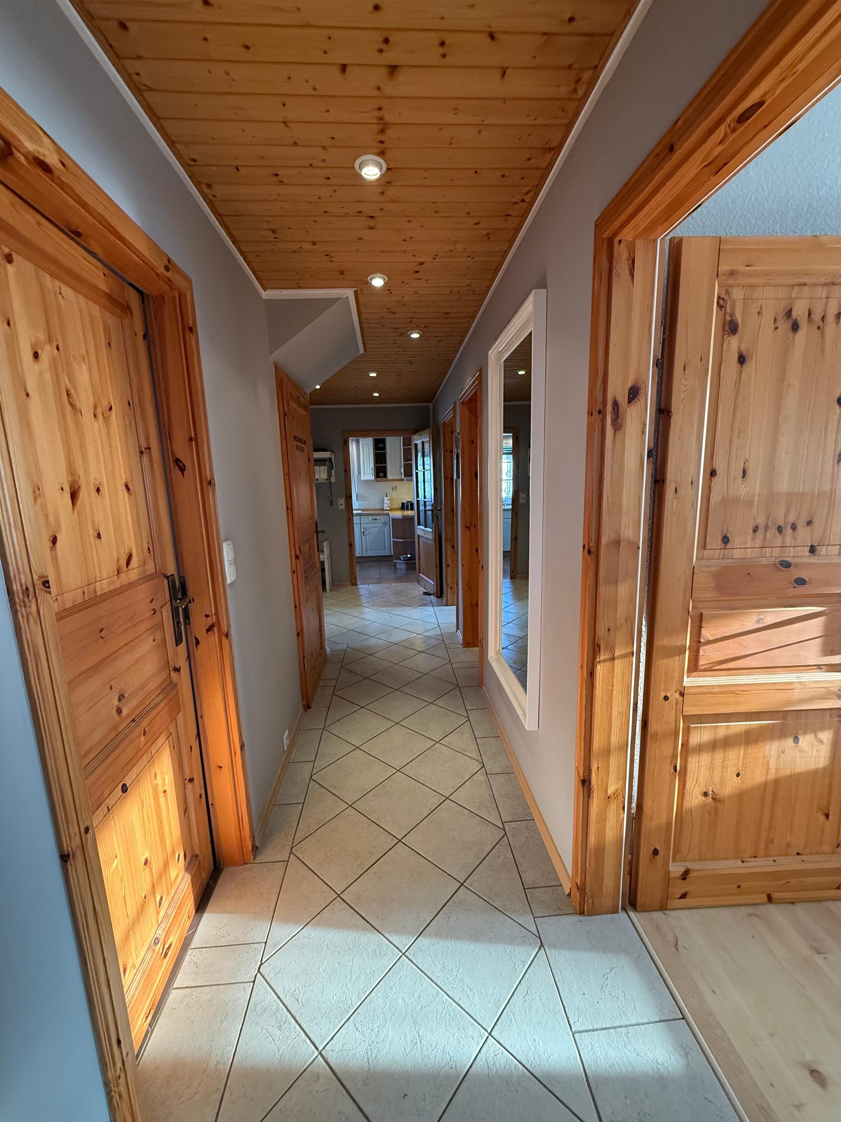 Es kann ggf auch die obere Wohnung mitgebracht werden und nutzt das Haus komplett.