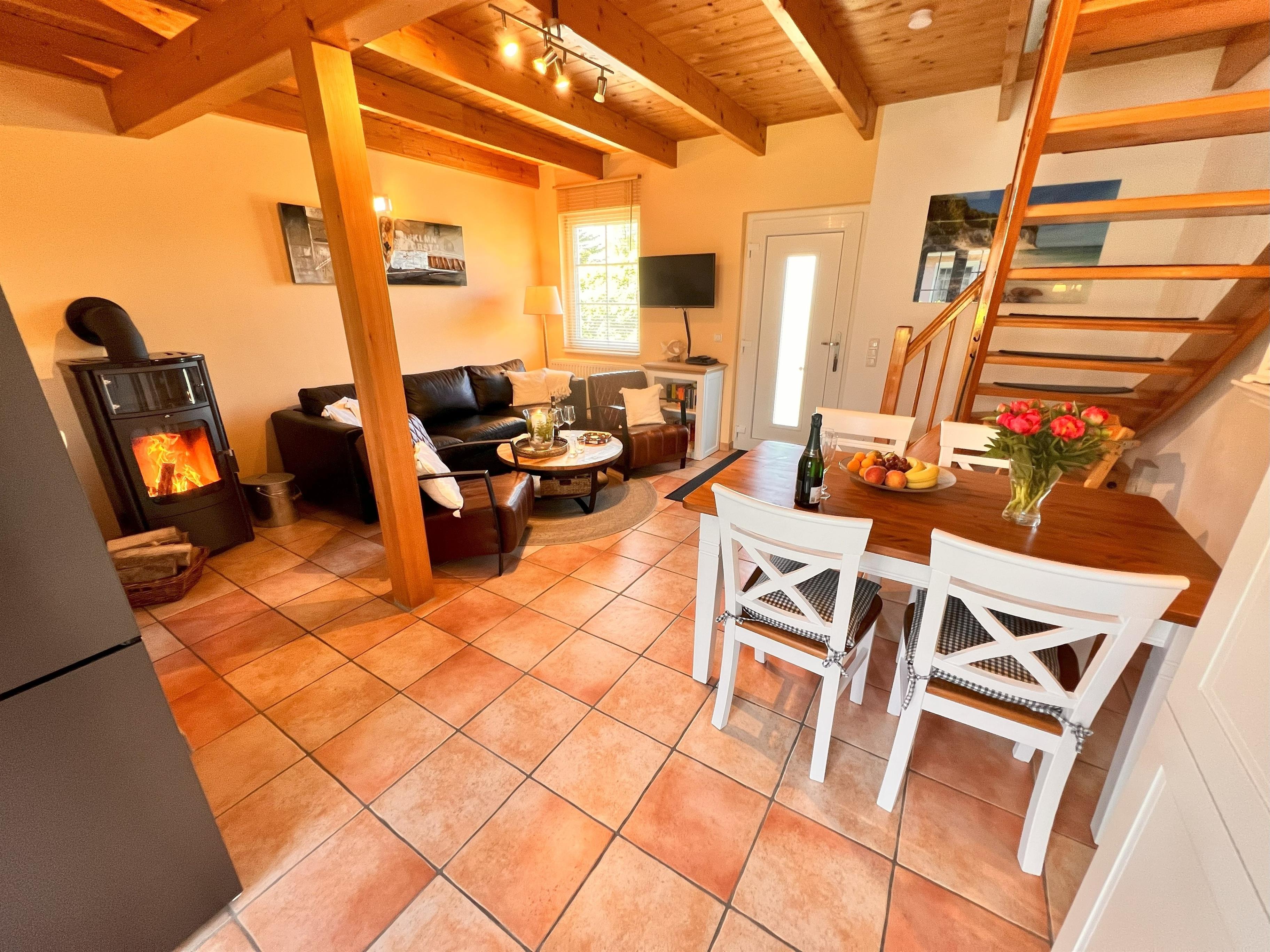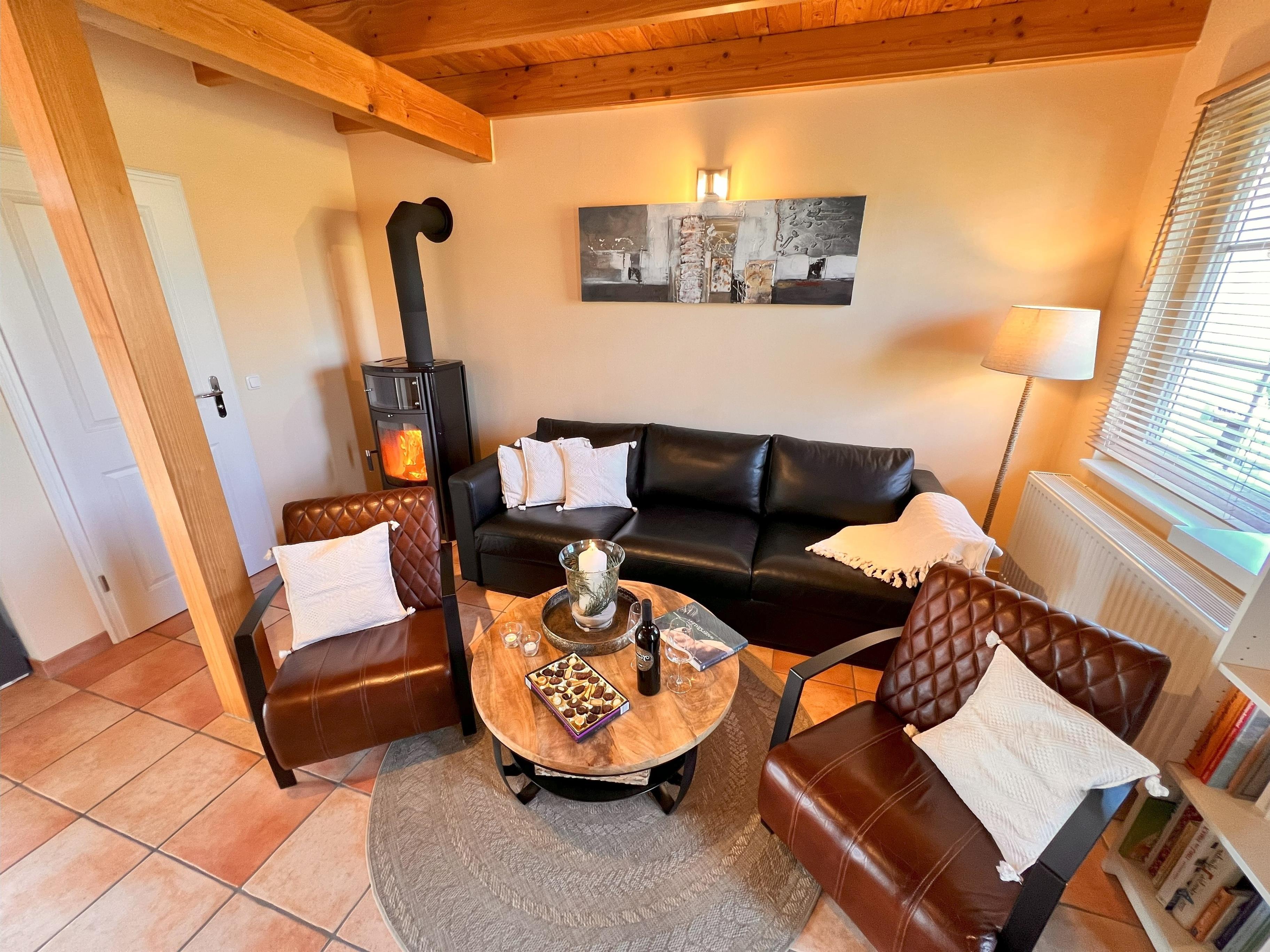 Bad. Die Wohnungen sind ausgestattet mit Polstermöbeln, Kamin, Sat-TV, DAB+ Radio,