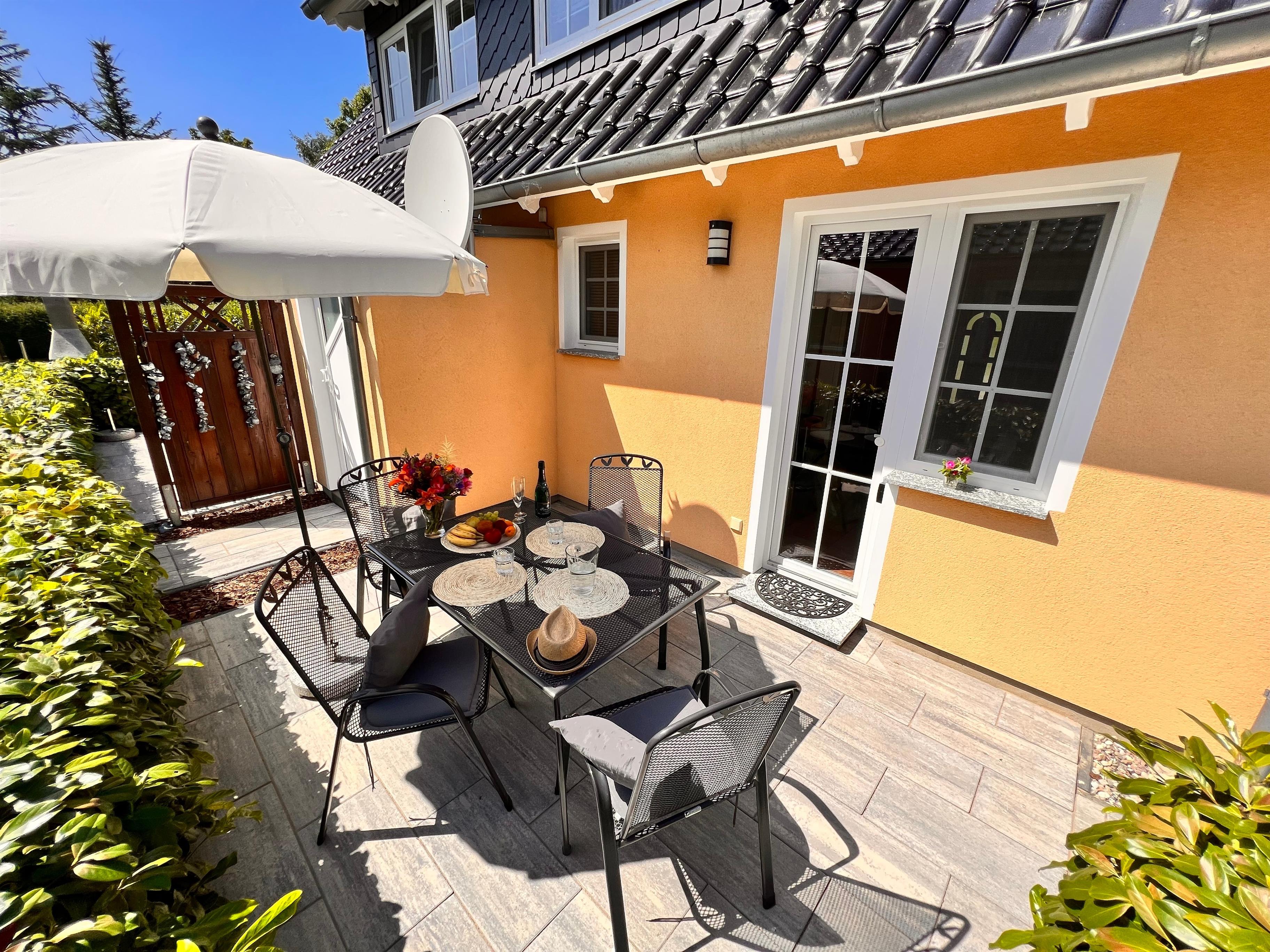 zur Verfügung. Hinterm Haus steht Ihnen eine 12 m² große Terrasse mit Gartenmöbeln und