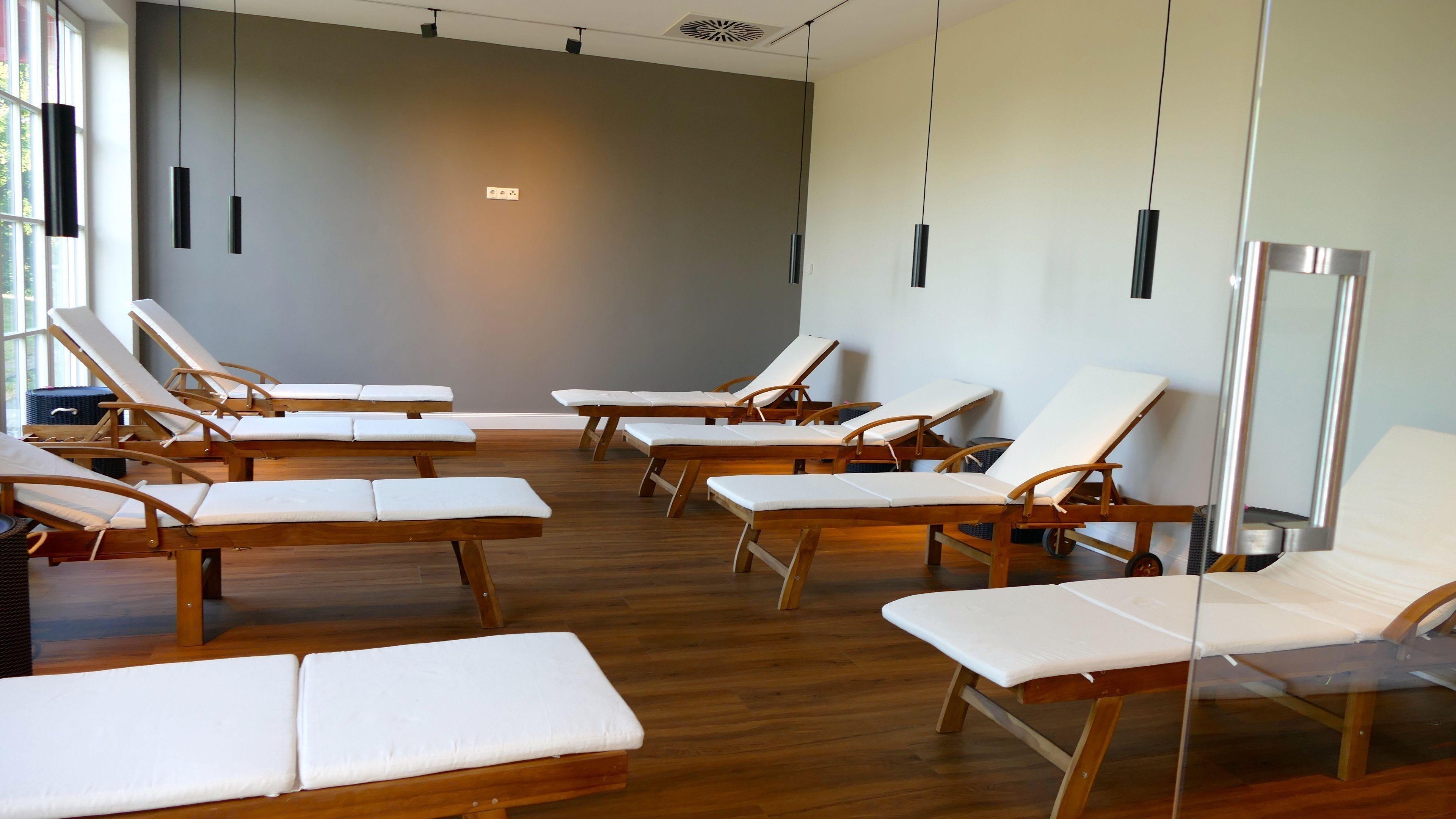Wer sich auch im Urlaub hin und wieder an Maschinen auspowern und kräftigen möchte, ist im Fitnessstudio mit angrenzender Terrasse und weitem Blick bis hin zum Bodden herzlich willkommen.