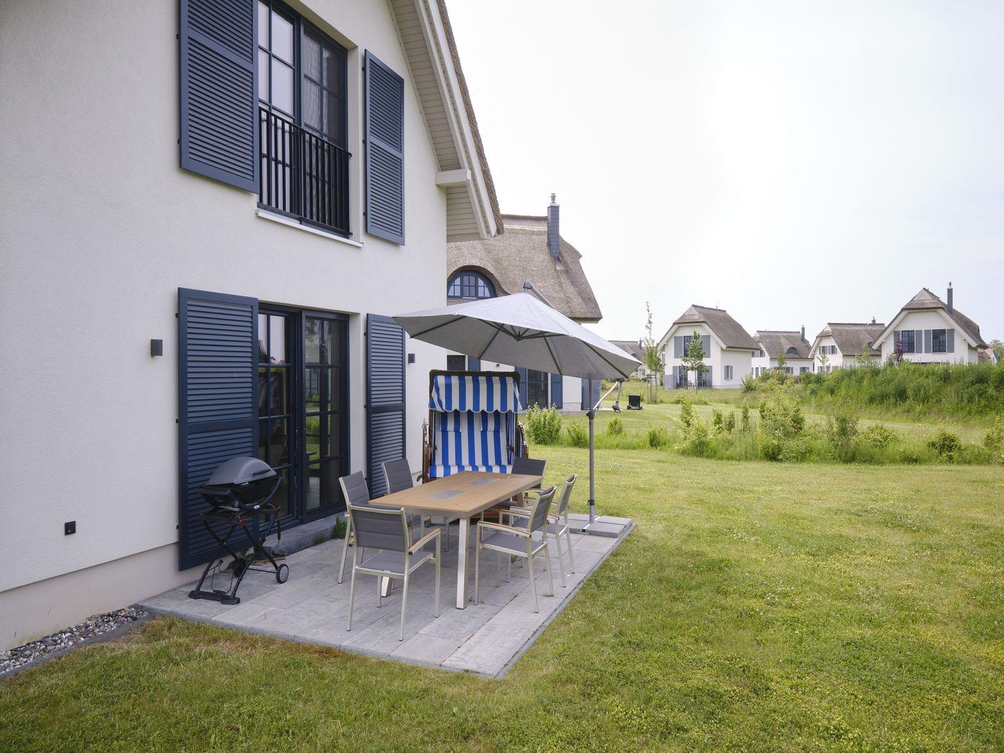 Erleben Sie Luxus und Erholung in der Premium Reetdachvilla mit Sauna und Kamin nahe dem Meer auf Rügen.