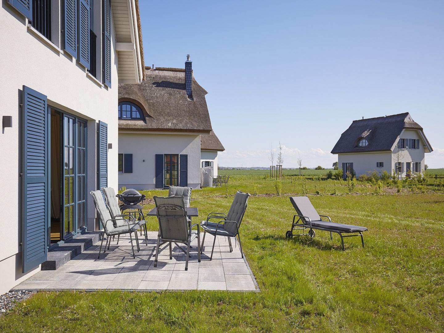 Luxuriöse Reetdachvilla in Dranske mit Sauna, Kamin und moderner Ausstattung in ruhiger Natur.