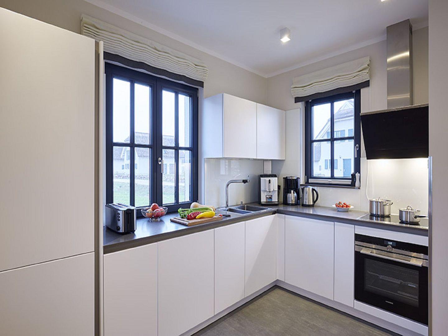 Diese neu erbaute Villa überzeugt mit Luxus pur und lädt Sie zu einem Frühstück auf einer Ihrer privaten Terrassen ein. Es erwartet Sie eine voll eingerichtete, hochwertige Qualitätsküche mit Geschirrspüler, Backofen, Kochfeld, Mikrowelle, Kaffeevollautomat, Wasserkocher und Toaster. Das Wohnzimmer verfügt über einen Kamin, einen LCD-Flachbildschirm, eine Stereo-Anlage sowie ein HiFi Radio mit Bluetooth Schnittstelle. Zwei Schlafzimmer sind mit bequemen Doppelbetten ausgestattet und bieten ausreichend Verstaumöglichkeiten. Das Vollbad überzeugt mit einer Badewanne, einer geräumigen Dusche, einem Waschbecken, einem WC und einem großen Spiegel. Zusätzlich gibt es ein Gäste-WC und eine Waschmaschine sowie einen Trockner.
