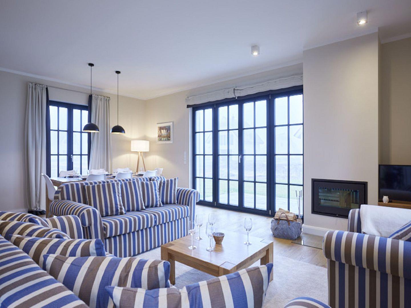 Luxus Reetdachvilla in Rügen mit Sauna, Kamin und privater Terrasse für erholsame Tage am Meer.