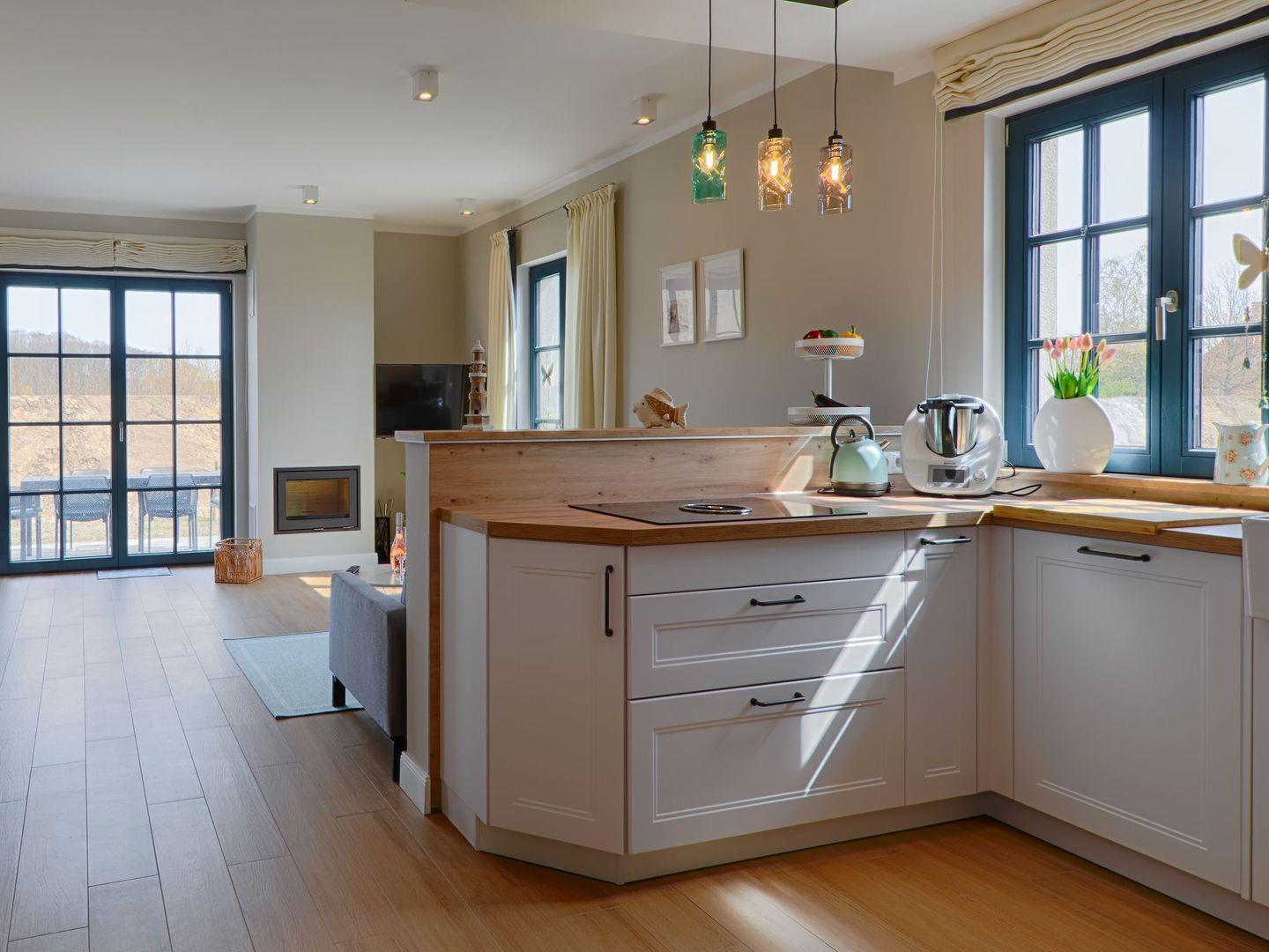 Luxuriöse Reetdachvilla in Dranske mit Sauna, Kamin und moderner Ausstattung für erholsame Tage am Meer.