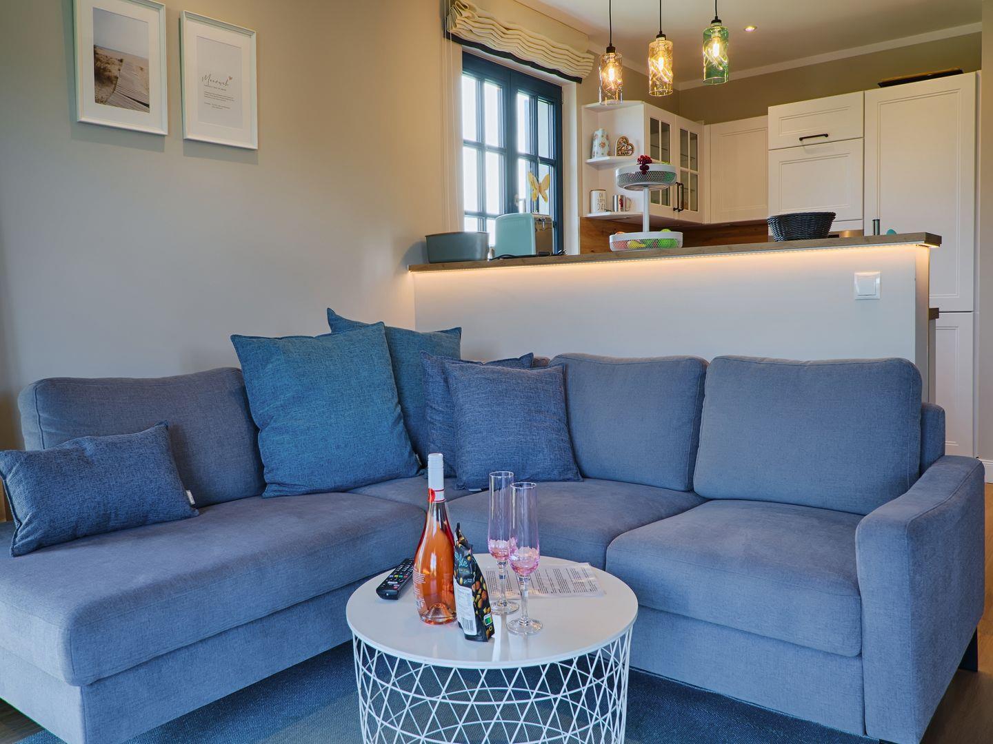 Freuen Sie sich in dieser luxuriösen Villa auf ein Frühstück auf der privaten Terrasse, einen gemütlichen Kaminabend und einen entspannten Saunabesuch in der hauseigenen Sauna mit Duschbad. Das Haus verfügt über eine zweite süd-westlich ausgerichtete Terrasse mit Strandkorb. Ein großzügiger Wohnraum kombiniert das Wohnzimmer mit Kamin, LCD-Flachbildschirm, DVD-Player und Stereo-Anlage mit dem Essbereich und einer Qualitätsküche. Diese ist voll eingerichtet und bietet einen Geschirrspüler, einen Backofen, ein Kochfeld, eine Mikrowelle, einen Kaffeevollautomat, einen Wasserkocher und einen Toaster. Drei Schlafzimmer, eines mit großem Doppelbett, die anderen mit je einem 160cm Doppelbett, verfügen zusätzlich über genügend Verstaumöglichkeiten. Das Vollbad überzeugt mit einer Badewanne, einer geräumigen Dusche, einem Waschbecken, einem WC und einem großen Spiegel. Zusätzlich gibt es ein Gäste-WC und eine Waschmaschine sowie einen Trockner.