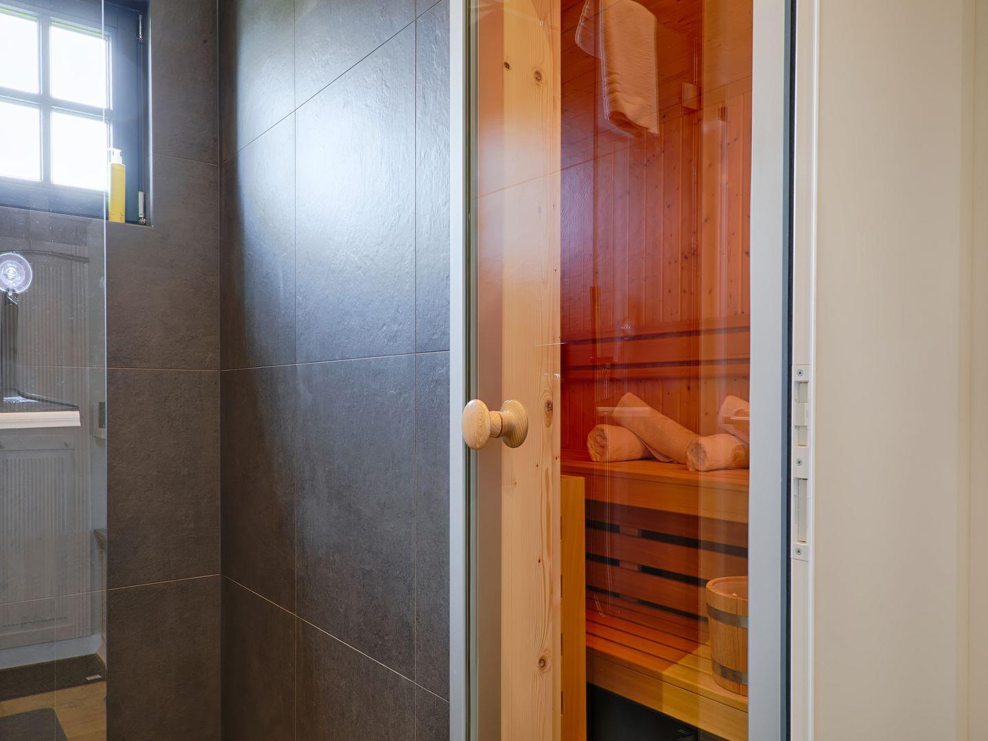 Freuen Sie sich in dieser luxuriösen Villa auf ein Frühstück auf der privaten Terrasse, einen gemütlichen Kaminabend und einen entspannten Saunabesuch in der hauseigenen Sauna mit Duschbad. Das Haus verfügt über eine 2. Terrasse mit Südausrichtung und freiem Blick auf den Bodden. Ein großzügiger Wohnraum kombiniert das Wohnzimmer mit Kamin, LCD-Flachbildschirm inklusive Sky und DAZN, DVD-Player und Stereo-Anlage mit dem Essbereich und einer Qualitätsküche. Diese ist voll eingerichtet und bietet einen Geschirrspüler, einen Backofen, ein Kochfeld, eine Mikrowelle, einen Kaffeevollautomat, einen Wasserkocher und einen Toaster. Drei Schlafzimmer, eines mit großem Doppelbett, eins mit einem Doppelbett sowie eins mit einem Einzelbett, verfügen zusätzlich über genügend Verstaumöglichkeiten. Im Masterbedroom komplettiert ein extra Beistelltisch mit 2 Sesseln das Interieur. Das Vollbad überzeugt mit einer Badewanne, einer geräumigen Dusche, einem Waschbecken, einem WC und einem großen Spiegel. Zusätzlich gibt es ein Gäste-WC und eine Waschmaschine sowie einen Trockner.