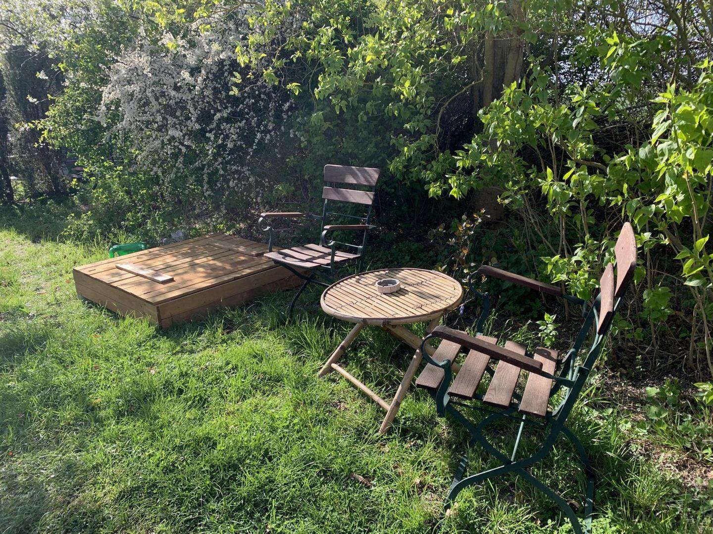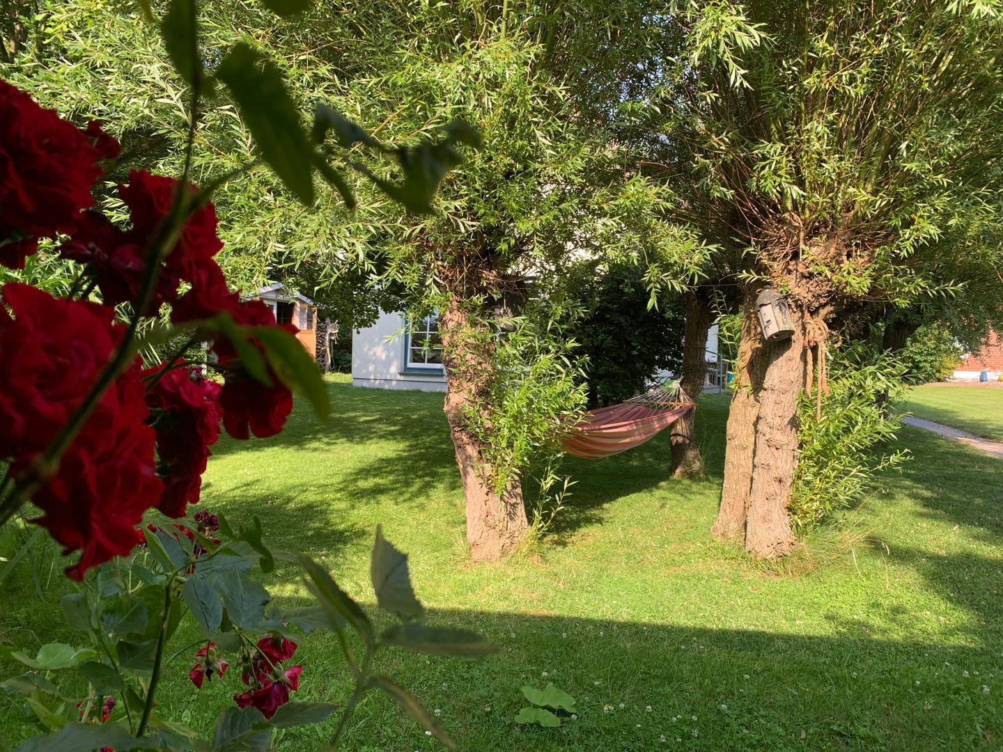 Das Haus steht auf einem 1.000 qm großen, gepflegten Grundstück mit schönem Baumbestand. Gartenmöbel, Hängematte und Liegestühle laden zum Entspannen ein.