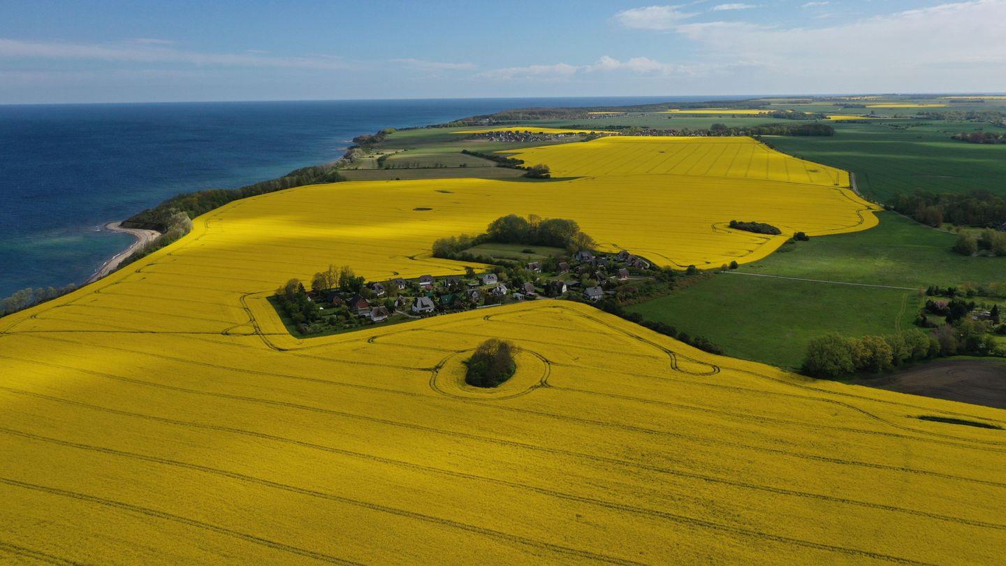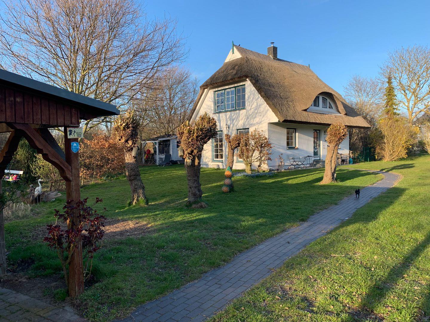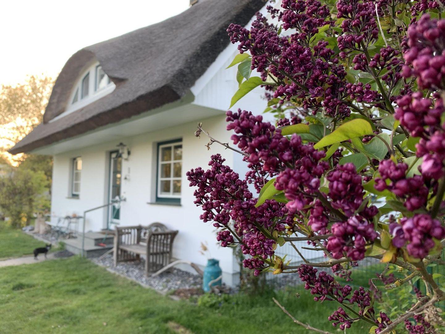 Idyllisches Reetdach-Ferienhaus in Dranske mit großem Garten und Seeblick, nur 350 m vom Ostseestrand entfernt.