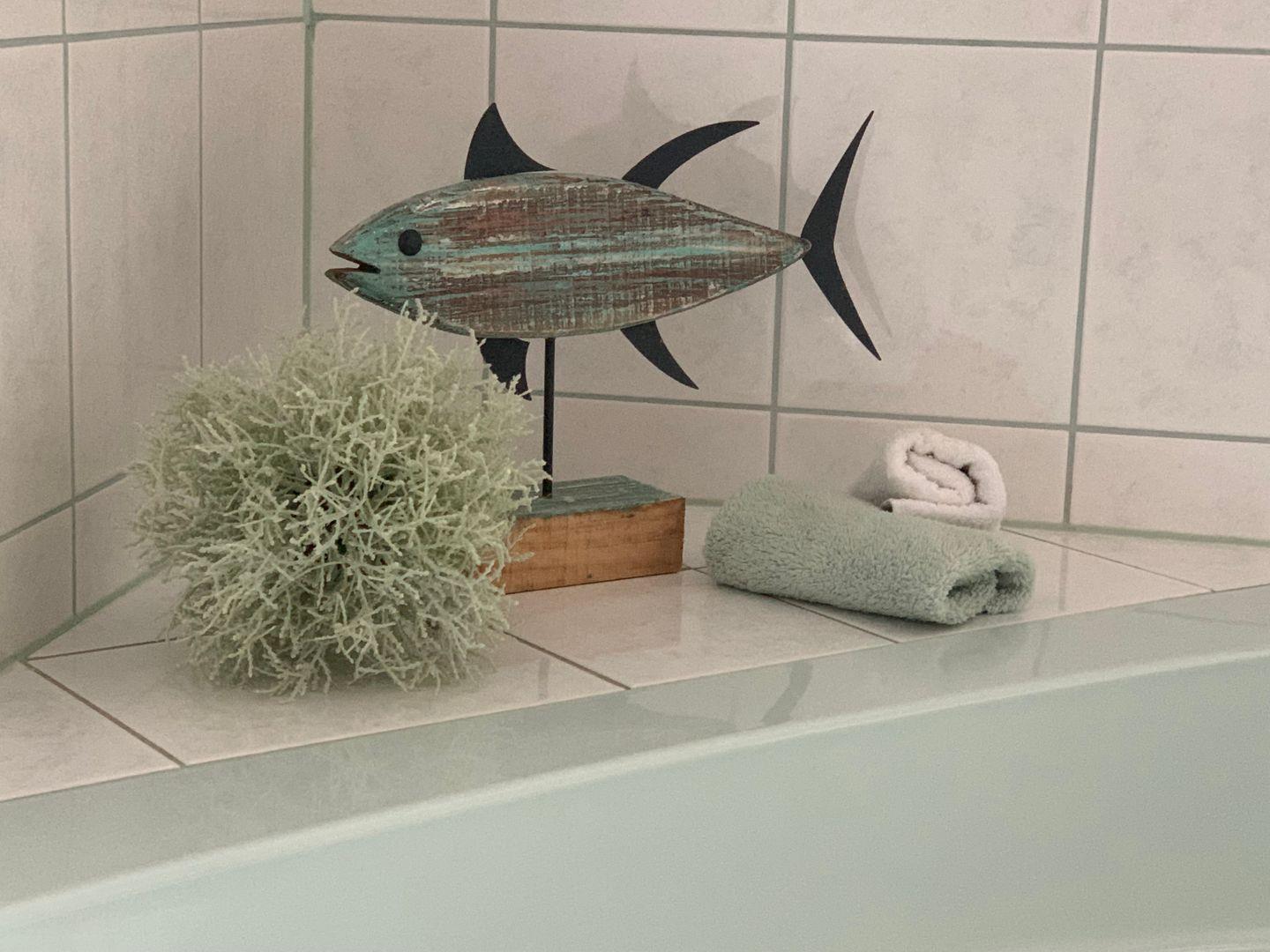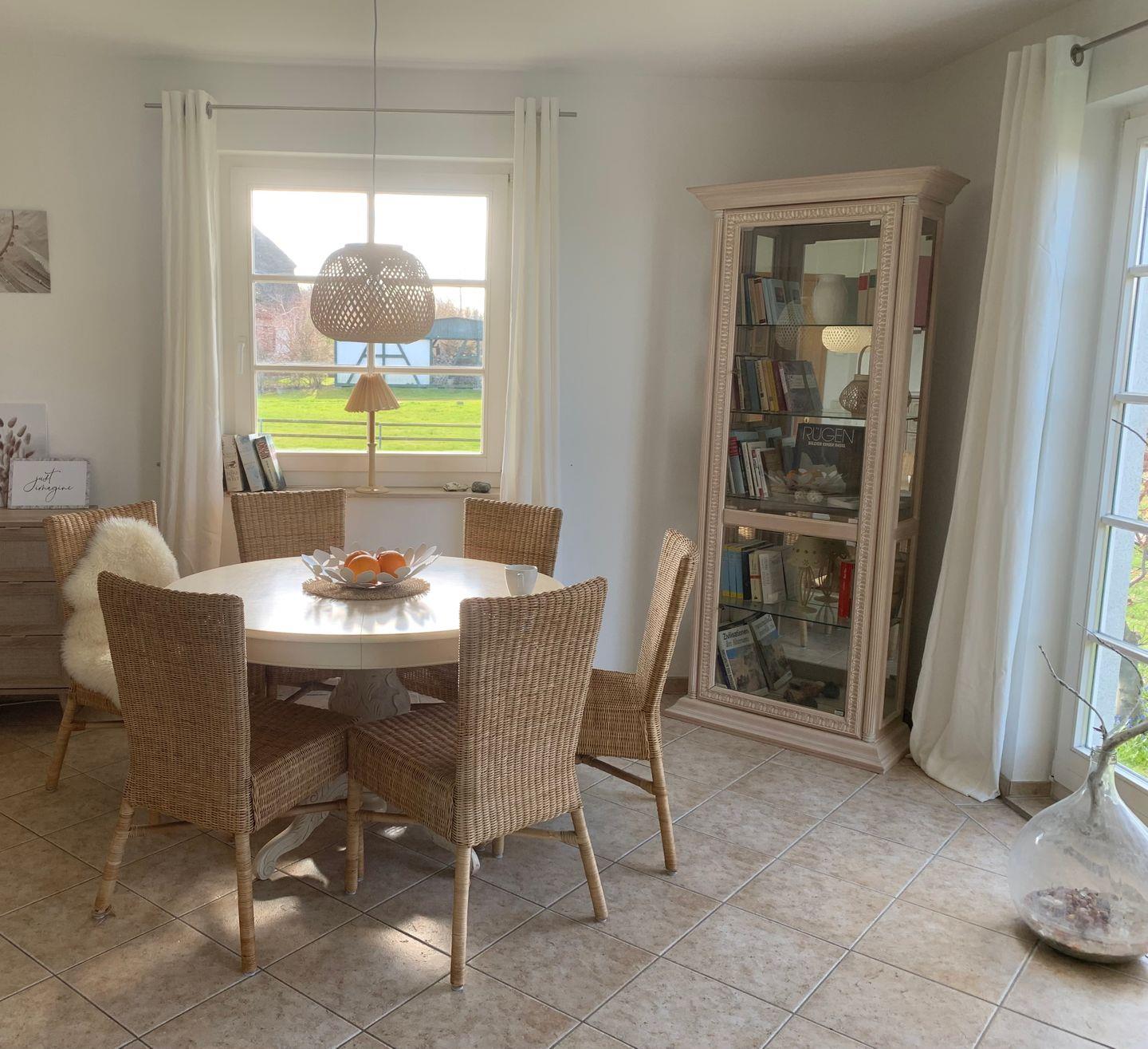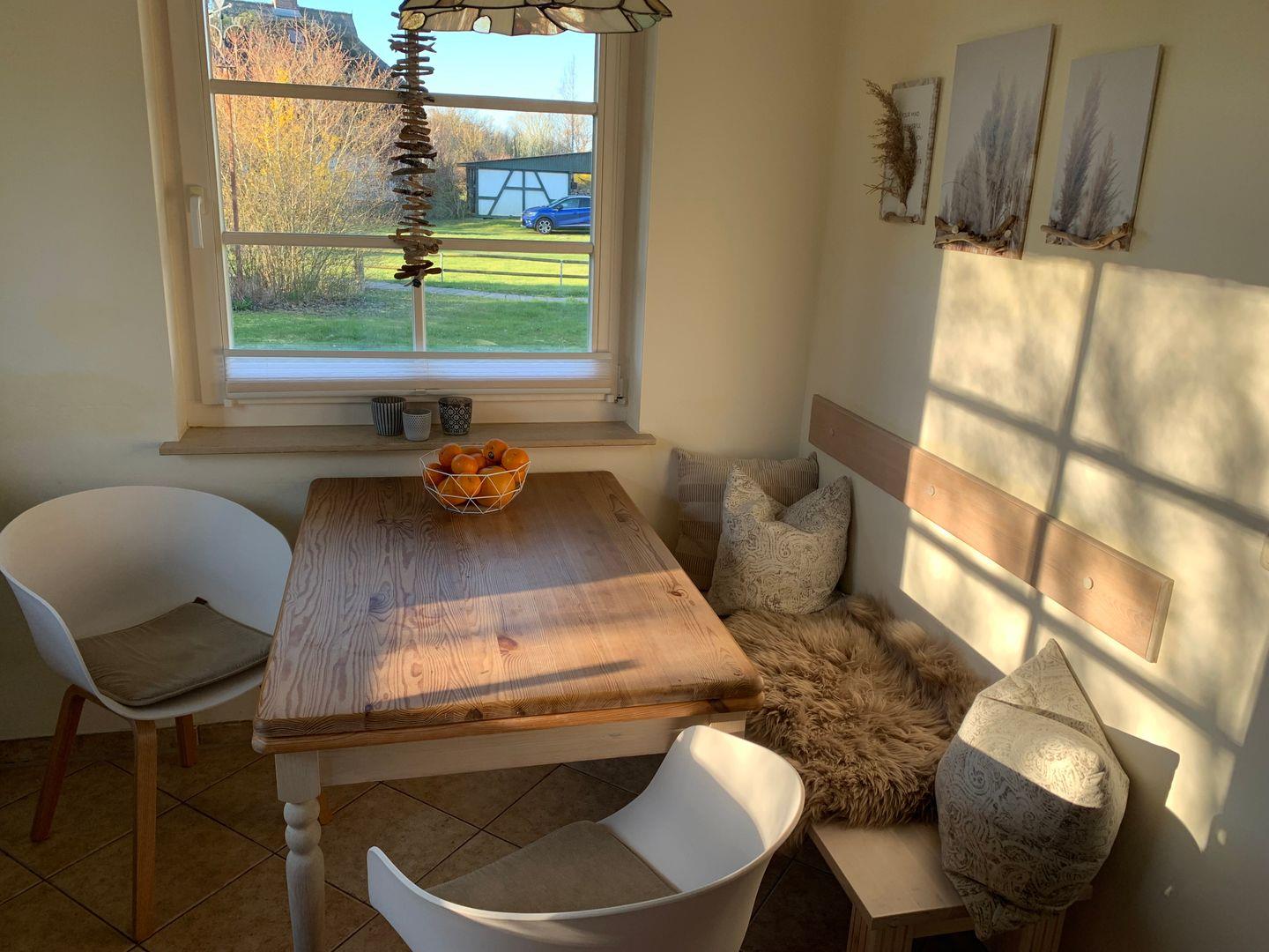 Die helle Landhaus-Küche ist ausgestattet mit Geschirrspüler, Kühlschrank /Gefriermöglichkeit, Backofen, Ceranherd, Mikrowelle, Kaffeemaschine, Espressomaschine, Wasserkocher, Toaster, Stabmixer, Handrührgerät und natürlich mit ausreichend Geschirr und weiteren Küchenutensilien. Auch hier in der Küche gibt es einen gemütlichen Essplatz.