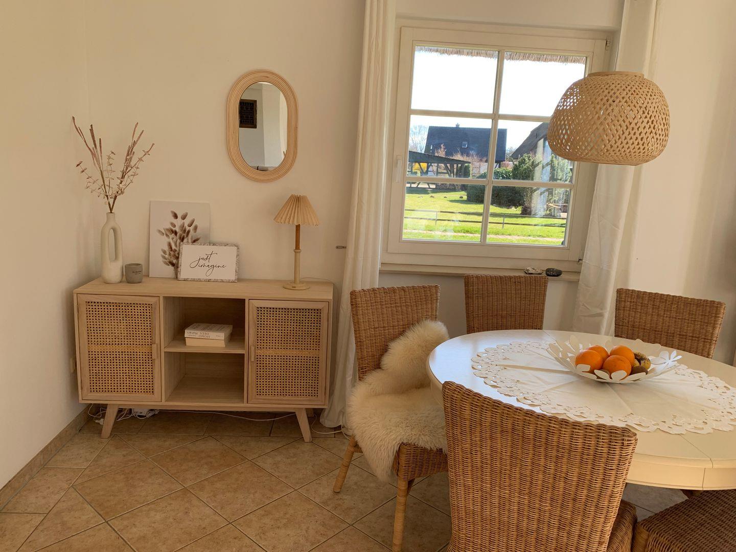 Das freistehende, reetgedeckte Ferienhaus wurde im Jahr 2000 neu errichtet, im Jahr 2023 renoviert und bietet neben viel Komfort eine gemütliche, liebevolle Ausstattung mit viel Holz und Naturmaterialien in hellen Farben.