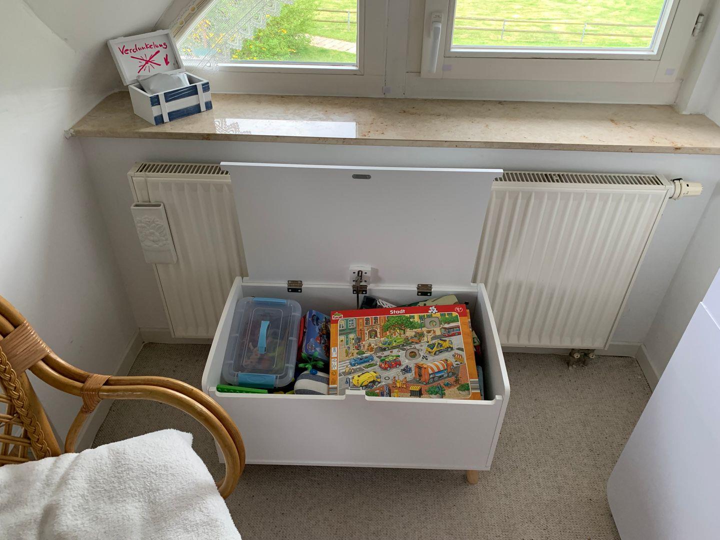 Für die kleinsten Gäste stehen ein Kinderbettchen, zwei Hochstühle, ein Kinderhocker, Kindergeschirr + Kinderbesteck, ein Nachtlicht, Sandspielzeug und ein Sandkasten zur Verfügung. Außerdem steht im Haus eine Waschmaschine zur Nutzung bereit.