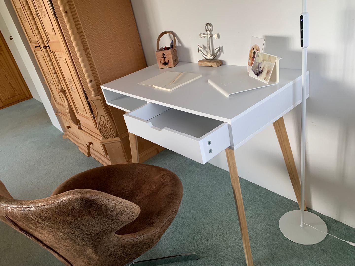 Im gesamten Erdgeschoss gibt es eine Fußbodenheizung, ebenso im Bad im Obergeschoss.