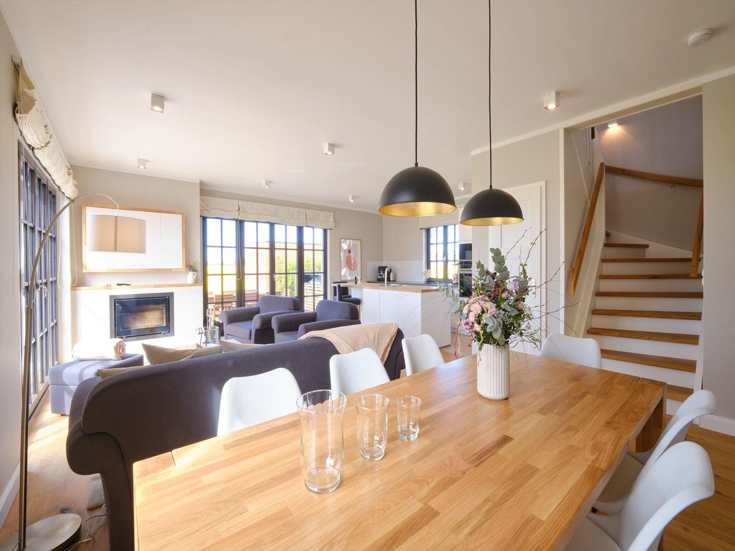 Genießen Sie puren Luxus in dieser neu erbauten Villa für anspruchsvolle Gäste, die das gewisse Etwas lieben! Eine private Terrasse mit einem herrlichen Loungebereich zum Entspannen, einer Außenküche mit durchdachten Details und einer Außensauna zum Relaxen, bietet diese Villa ein unvergleichliches Urlaubserlebnis für bis zu 8 Personen. Es erwartet Sie eine große, in den Wohnbereich integrierte, voll eingerichtete, hochwertige Qualitätsküche mit Geschirrspüler, Backofen, Kochfeld, Mikrowelle, Kaffeevollautomat, Wasserkocher und Toaster. Das Wohnzimmer verfügt über einen Smart Home Flachbildschirm, eine Stereo-Anlage sowie einem großen eingebauten Kamin, der dem Wohnbereich einen besonderen Charakter verleiht. Insgesamt gibt es vier Schlafzimmer, alle Schlafzimmer sind mit hochwertigen Boxspringbetten ausgestattet. Drei befinden sich im Obergeschoß und ein Schlafzimmer im Erdgeschoß. Des Weiteren verfügt diese Villa über 2 Bäder und einer weiteren Badelounge im Obergeschoß. Das En Suite Bad überzeugt mit einer Eckbadewanne, einer ebenerdigen großen Dusche, einem Waschbecken, einem WC und einem großen Spiegel. Ein Hauswirtschaftsraum, eine Waschmaschine sowie ein Trockner gehören ebenfalls zur Ausstattung.