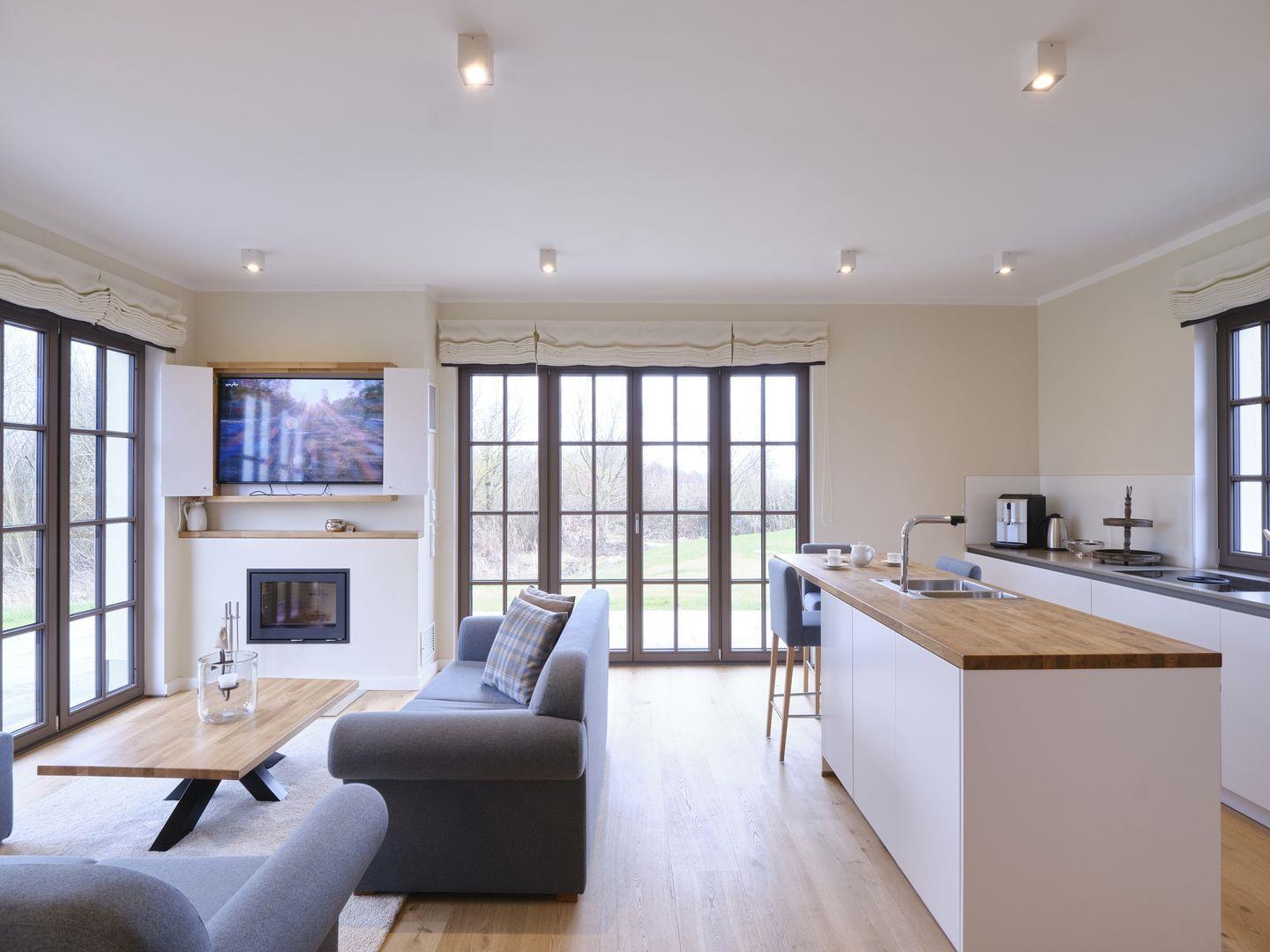 Neu erbaute Villa mit 155 qm, Loungebereich, Außensauna, 4 Schlafzimmer mit Boxspringbetten, großzügiger Wohnraum mit Essbereich und großem Kamin, eine hochwertige in den Wohnbereich integrierte Qualitätsküche mit Geschirrspüler, 1 Badelounge, 1 Vollbad, 1 Gäste-WC, Hauswirtschaftsraum mit Waschmaschine und Trockner, LCD-Flachbildschirme sowie eine Stereo-Anlage, Bettwäsche und Handtücher sind ausreichend vorhanden.