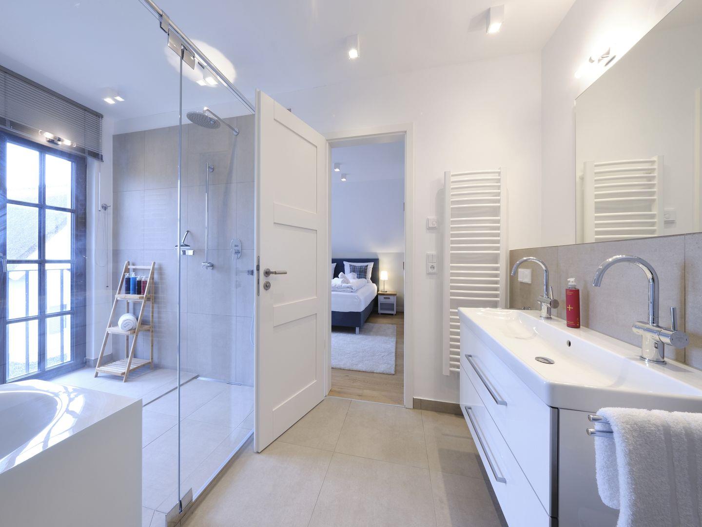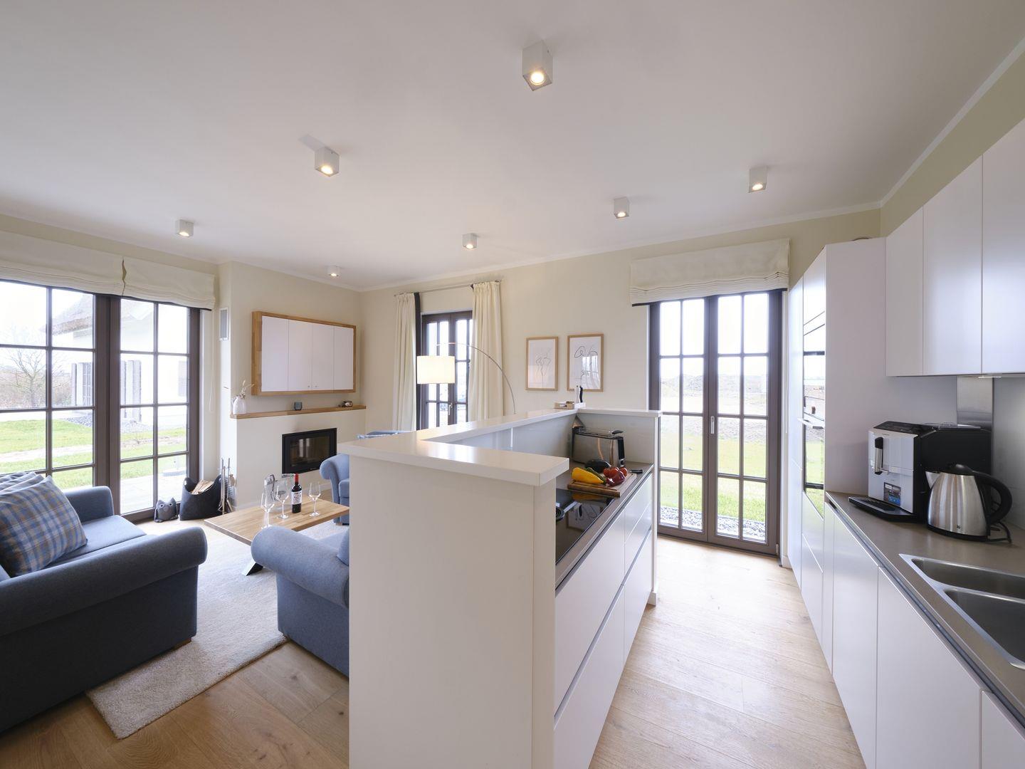 Neu erbaute Villa mit 140 qm, 3 Schlafzimmer mit Boxspringbetten, großzügiger Wohnraum mit Essbereich und großem Kamin, eine hochwertige Qualitätsküche mit Geschirrspüler, 1 Badelounge, 1 Vollbad, 1 Sauna, Waschmaschine und Trockner, LCD-Flachbildschirme sowie eine Stereo-Anlage, Bettwäsche und Handtücher sind ausreichend vorhanden.