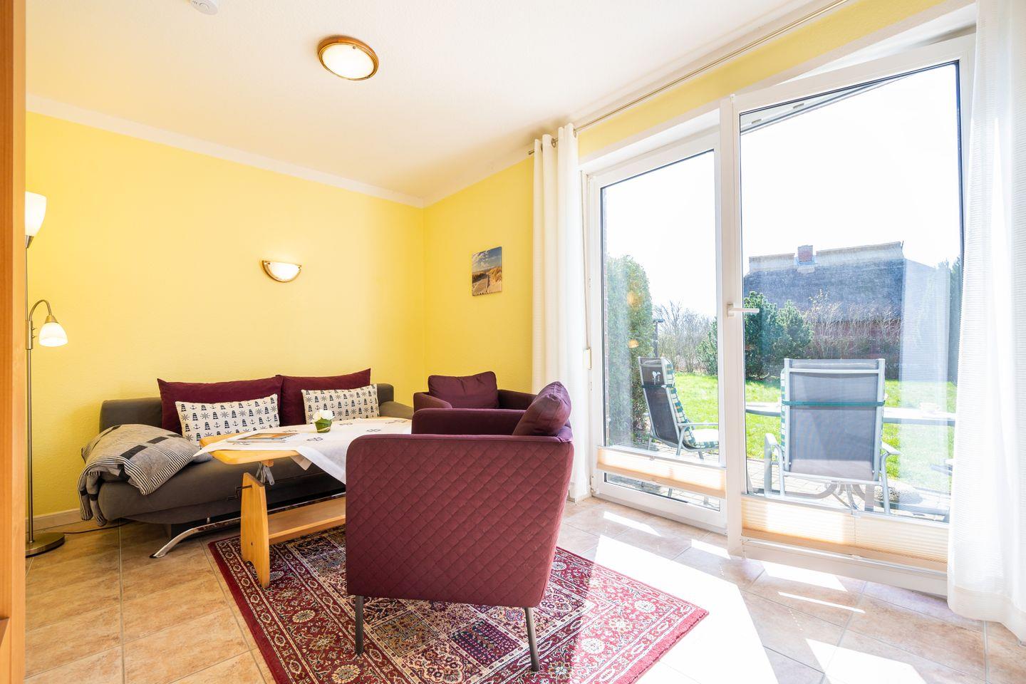 Charmante Ferienwohnung Abendsegler mit Terrasse in ruhiger Lage nahe dem Strand von Goos auf Rügen.