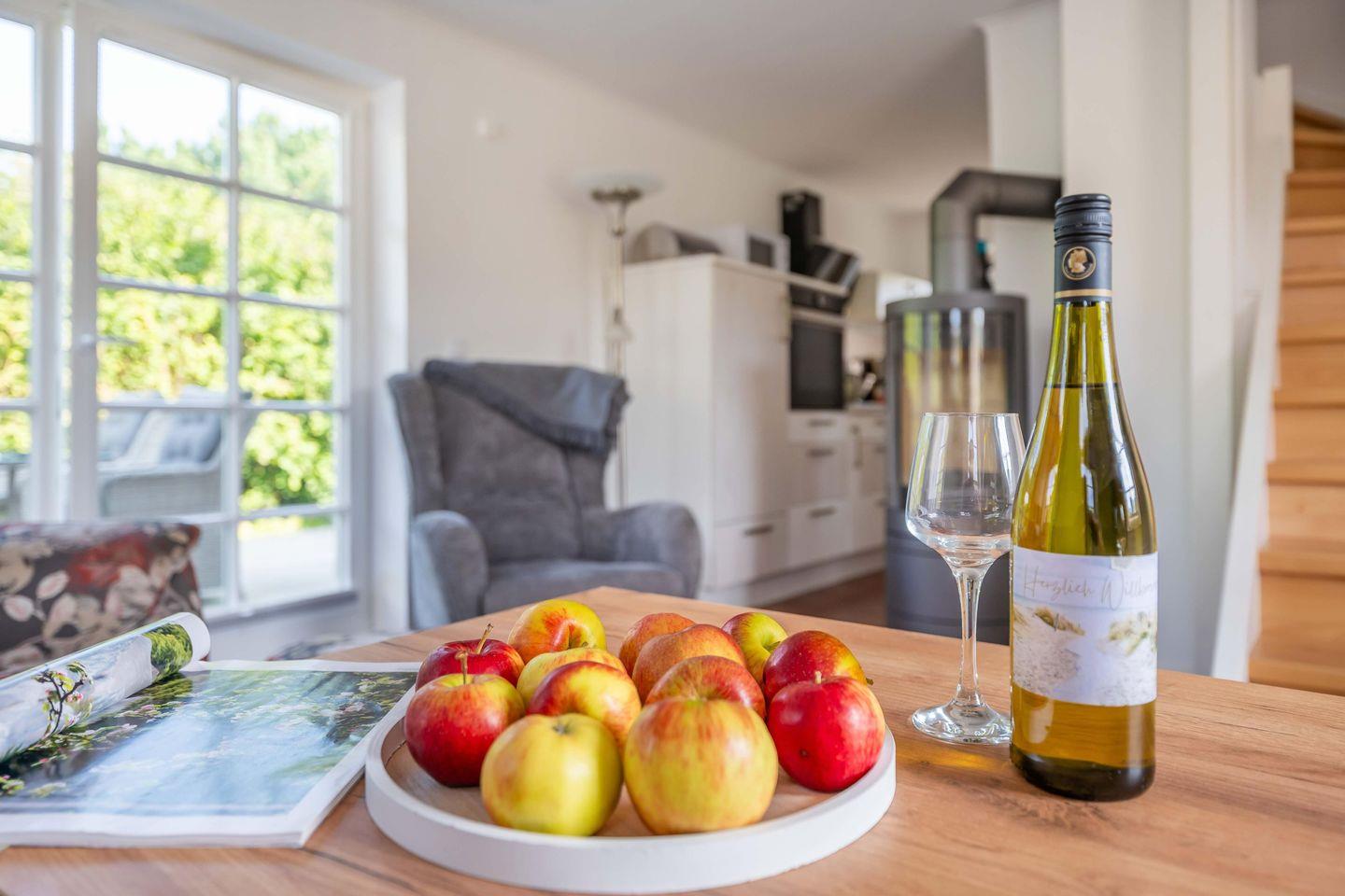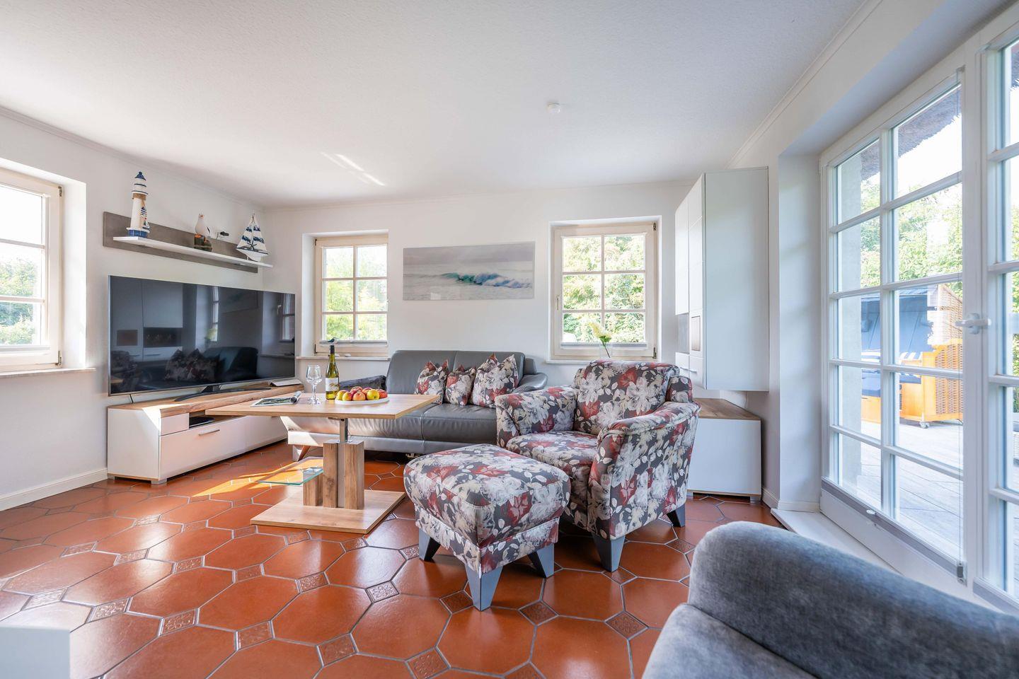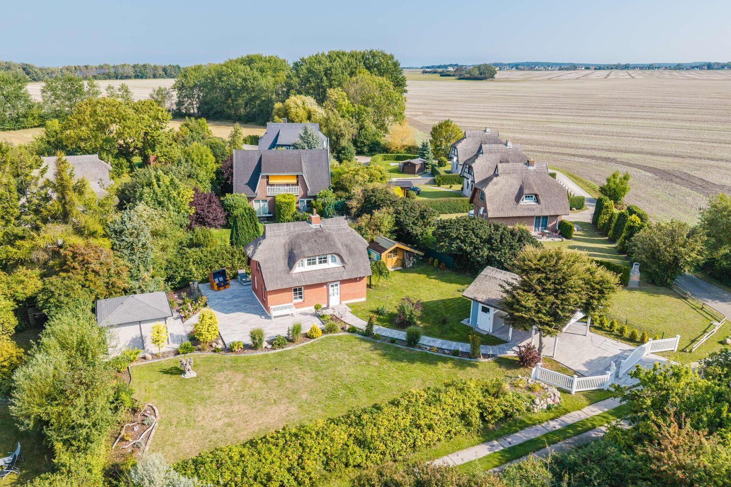 In der Sommersaison bringt Sie die Fähre von der Seebrücke in Dranske bequem auf die autofreie Insel Hiddensee – ein Ausflug, der lange in Erinnerung bleibt. Die weite Küstenlandschaft lädt zu Wanderungen und Radtouren ein; der Hochuferweg Richtung Kap Arkona gilt als eine der schönsten Küstenstrecken Rügens. Wassersportfans finden am nahen Wieker Bodden beste Bedingungen zum Kitesurfen oder Stand-up-Paddling. Trotz der idyllischen Abgeschiedenheit sind die Orte Dranske, Wiek und Altenkirchen nur einen Katzensprung entfernt – mit Einkaufsmöglichkeiten und Cafés, die die stille Lage alltagstauglich machen.