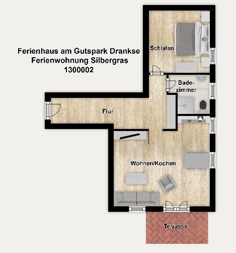 Die Ferienanlage umfasst 23 Ferienwohnungen. In unserem 55 m² großen Appartement "Silbergras" im Erdgeschoss erwartet Sie ein Wohnraum mit Schlafsofa (160 cm x 198 cm), TV, offener Küche und Essbereich sowie ein separates Schlafzimmer mit Doppelbett (180 cm x 200 cm) und ein Duschbad. Das Appartement verfügt außerdem über eine Terrasse, sodass Sie die wohltuende Ostseeluft genießen können.