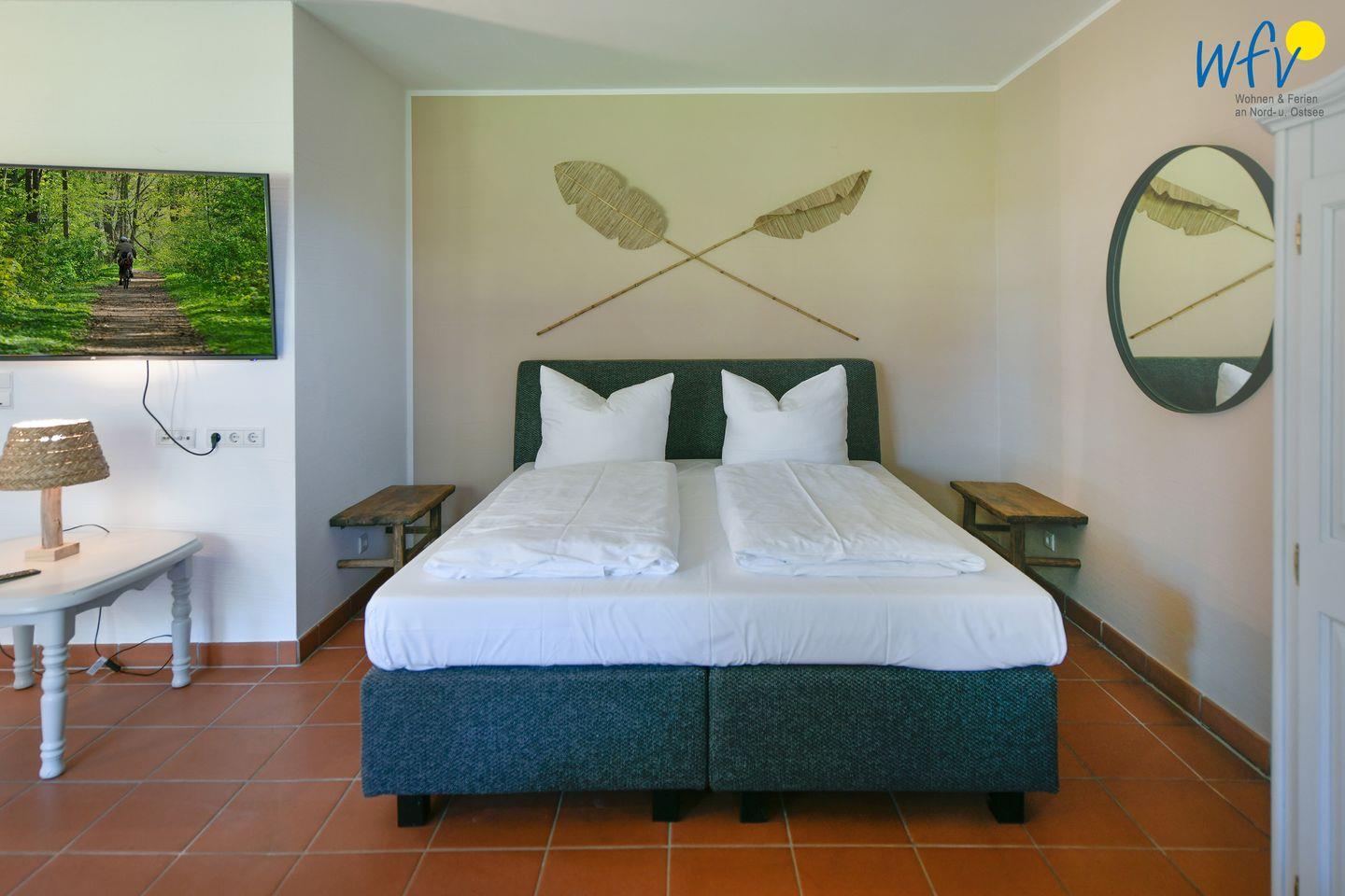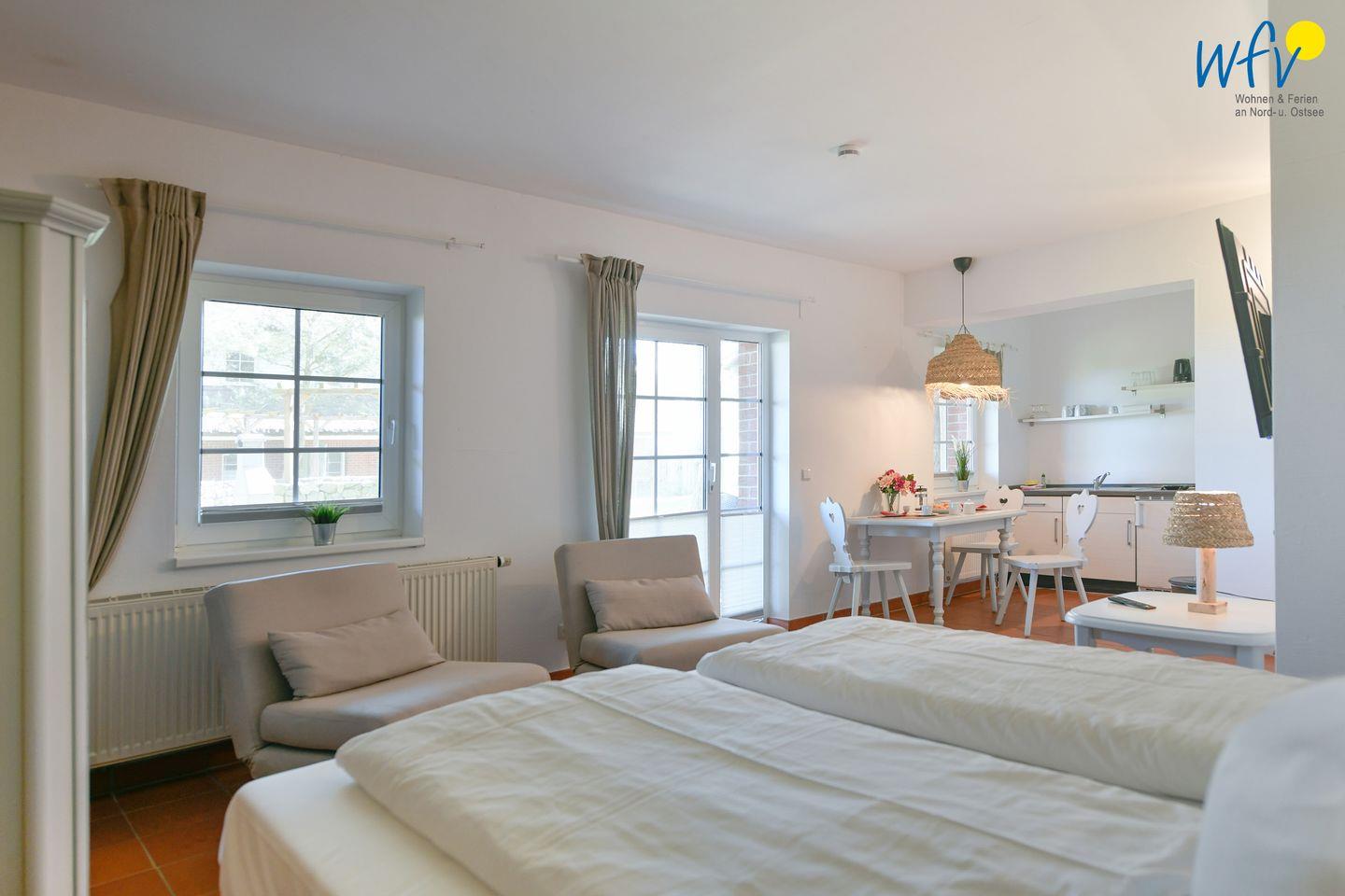 Die Ferienanlage umfasst 23 Ferienwohnungen. In unserem 33 m² großen Appartement "Heiderose" im Erdgeschoss erwartet Sie ein kombinierter Wohn-/Schlafraum mit Sitzgelegenheiten, TV, Doppelbett (180 cm x 200 cm), offener Küche und Essplatz sowie ein Duschbad. Das Appartement verfügt außerdem über eine Terrasse, sodass Sie die wohltuende Ostseeluft genießen können.