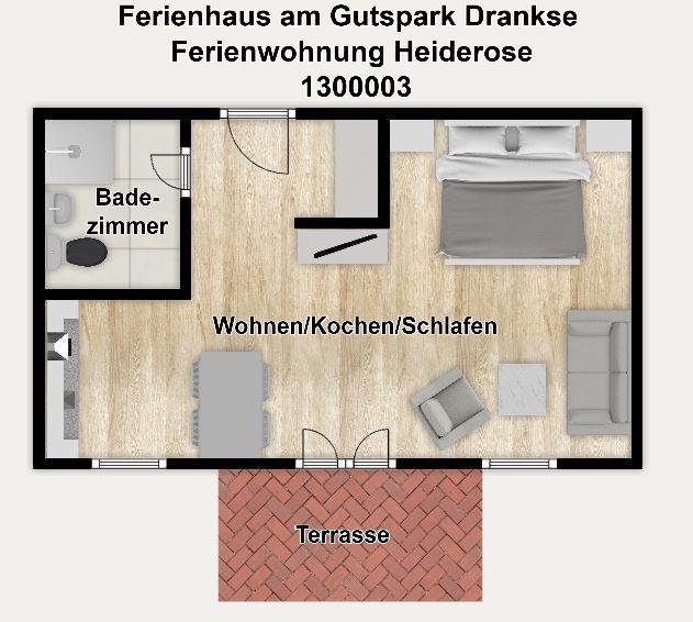 Gemütliche Ferienwohnung Heiderose mit Terrasse und Garten im Ferienhaus am Gutspark Dranske.