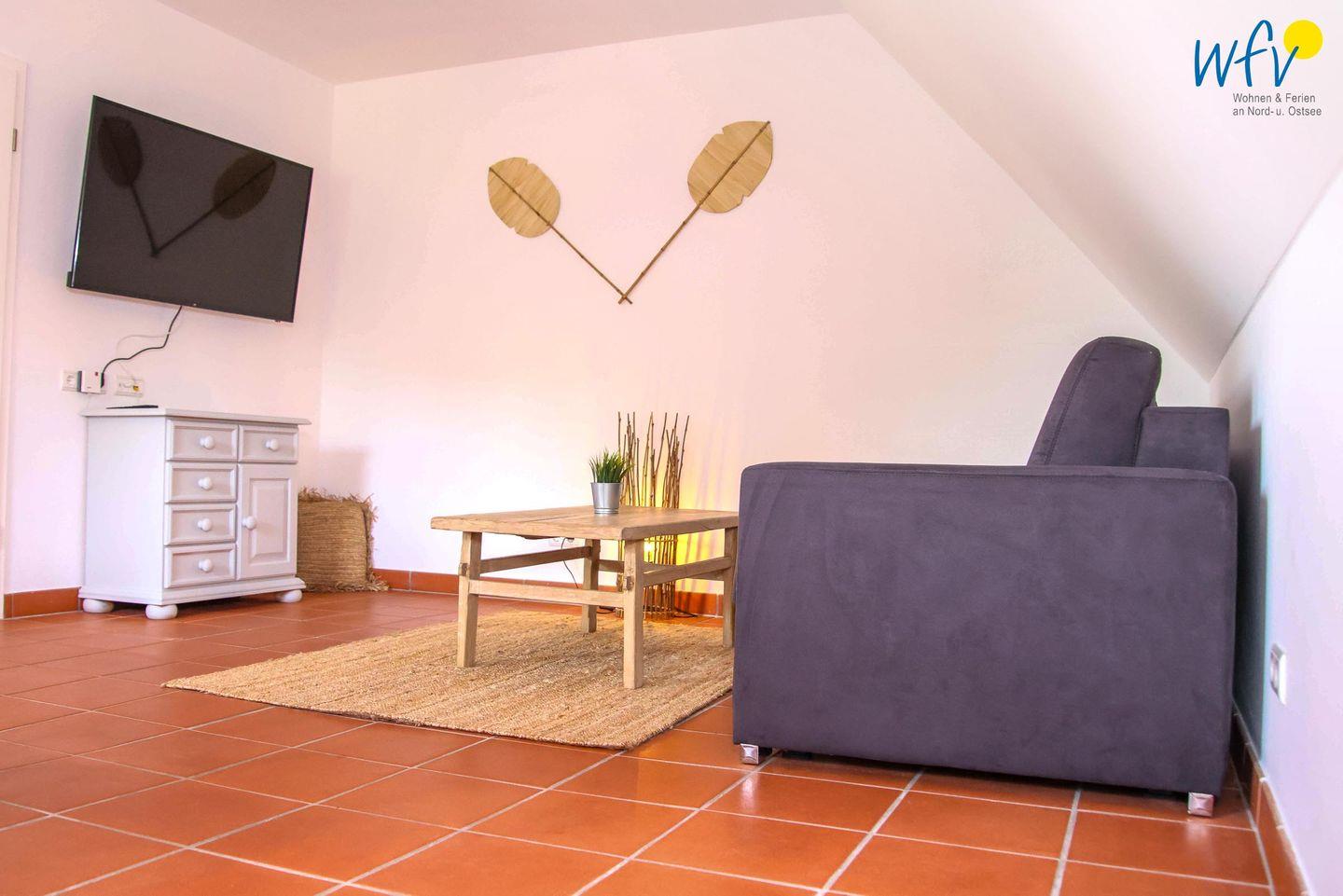 Gemütliche Ferienwohnung Strandkamille im Ferienhaus am Gutspark Dranske für Naturliebhaber und Familien.