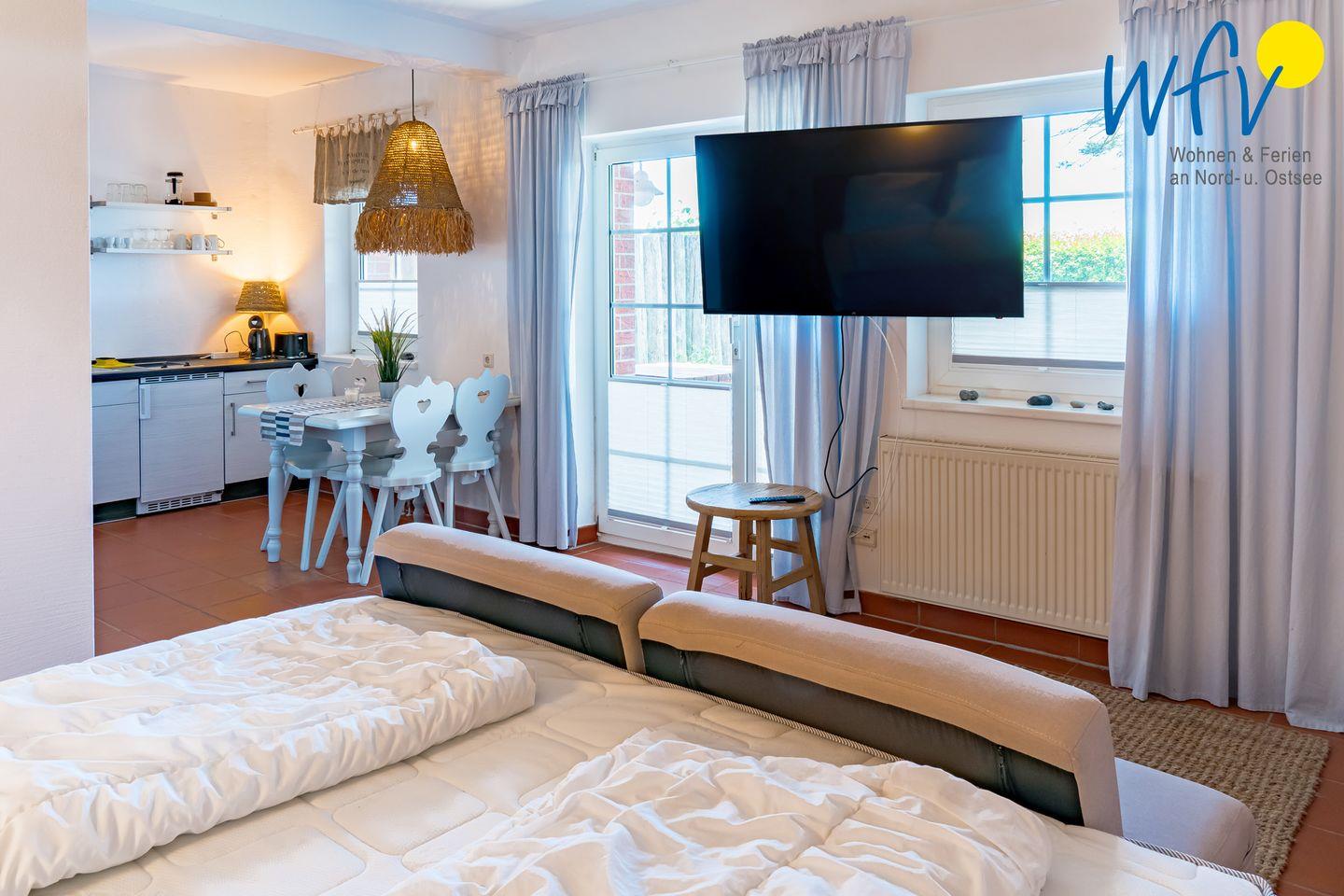 Die Ferienanlage umfasst 23 Ferienwohnungen. In unserem 42 m² großen Appartement "Sonnengarten" im Erdgeschoss erwartet Sie ein kombinierter Wohn-/Schlafraum mit Sitzgelegenheiten, Doppelbett (180 cm x 200 cm) und offener Küche sowie ein Duschbad. Das Appartement verfügt außerdem über eine Terrasse, sodass Sie die wohltuende Ostseeluft genießen können.