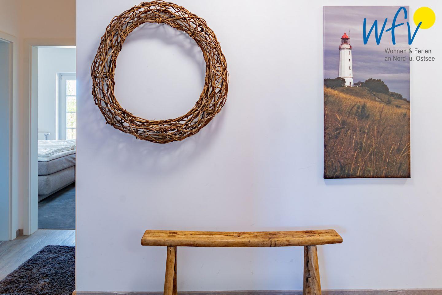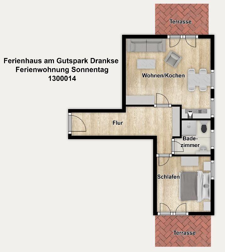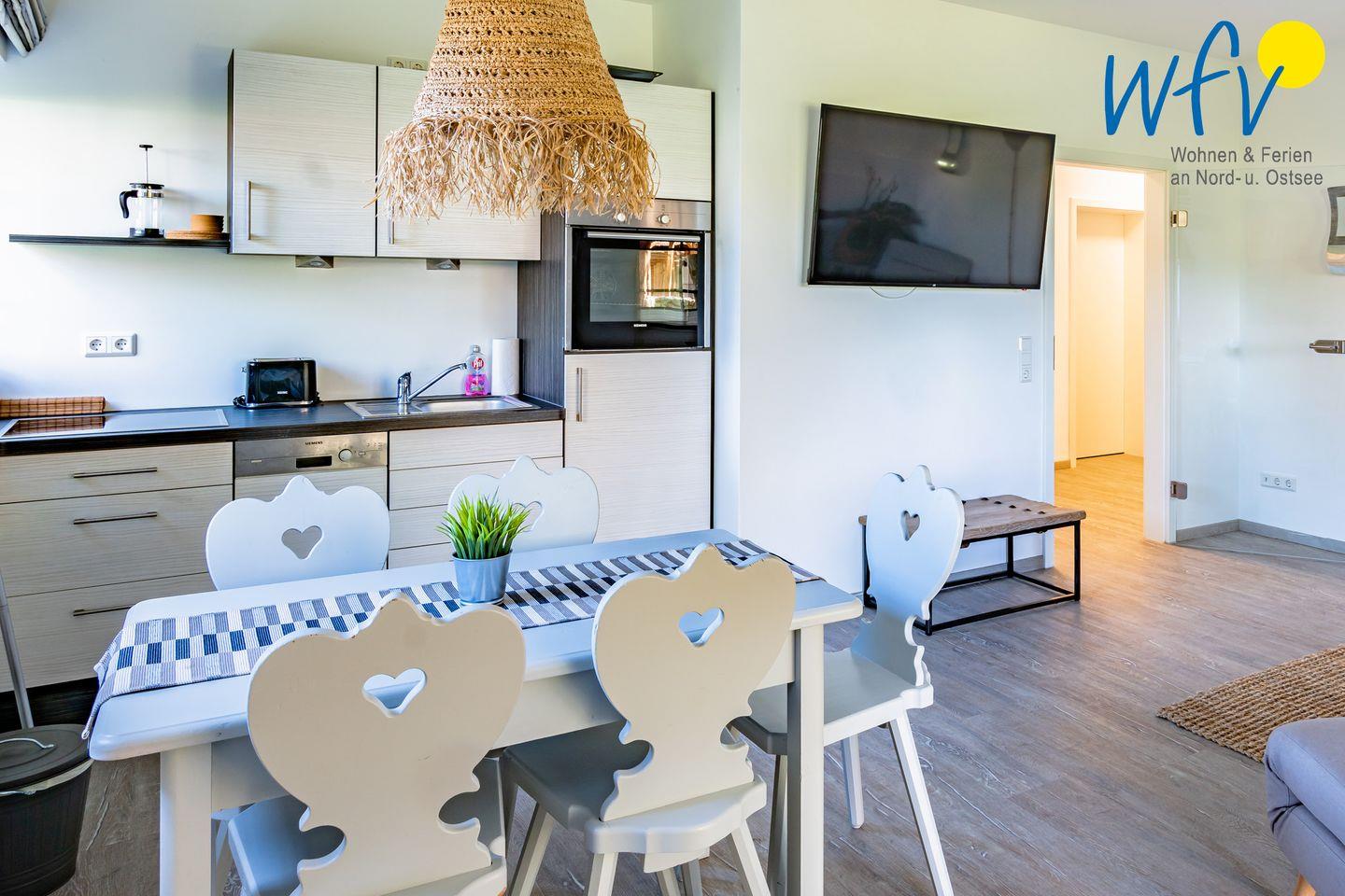 Die Ferienanlage umfasst 23 Ferienwohnungen. In unserem 55 m² großen Appartement "Sonnentag" im Erdgeschoss erwartet Sie ein gemütlicher Wohnraum mit Schlafsofa (160 cm x 198 cm), TV, offener Küche und Essplatz sowie ein separates Schlafzimmer mit Doppelbett (180 cm x 200 cm) und ein Duschbad. Das Appartement verfügt außerdem über eine Terrasse, sodass Sie die wohltuende Ostseeluft genießen können. Bei Bedarf kann diese Wohnung mit der Wohnung 13 durch eine Zwischentüre verbunden werden.