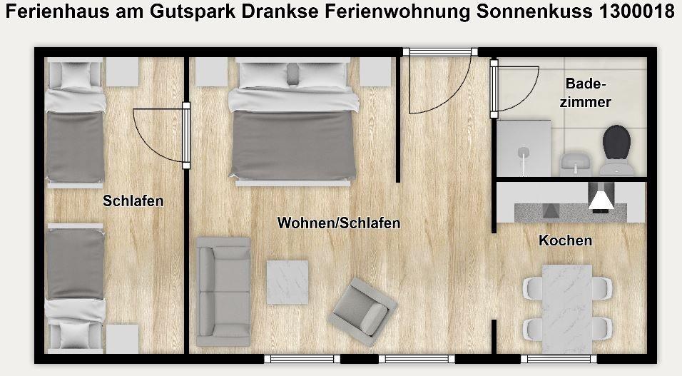 Perfekt für Naturliebhaber, Surfer und Familien! In unserer "Ferienwohnung Sonnenkuss" im "Ferienhaus am Gutspark Dranske" genießen Sie einen Urlaub in Rügens malerischer Landschaft. Die Unterkunft bietet Ihnen Platz für 4 Personen - mit gemütlichem Wohnraum, Kochnische und separatem Schlafzimmer. Ein Außenbereich mit Grillplatz und kleinem Kinderspielplatz ergänzen das Angebot. Auch Ihr Haustier ist herzlich willkommen. Wir wünschen Ihnen gute Erholung!