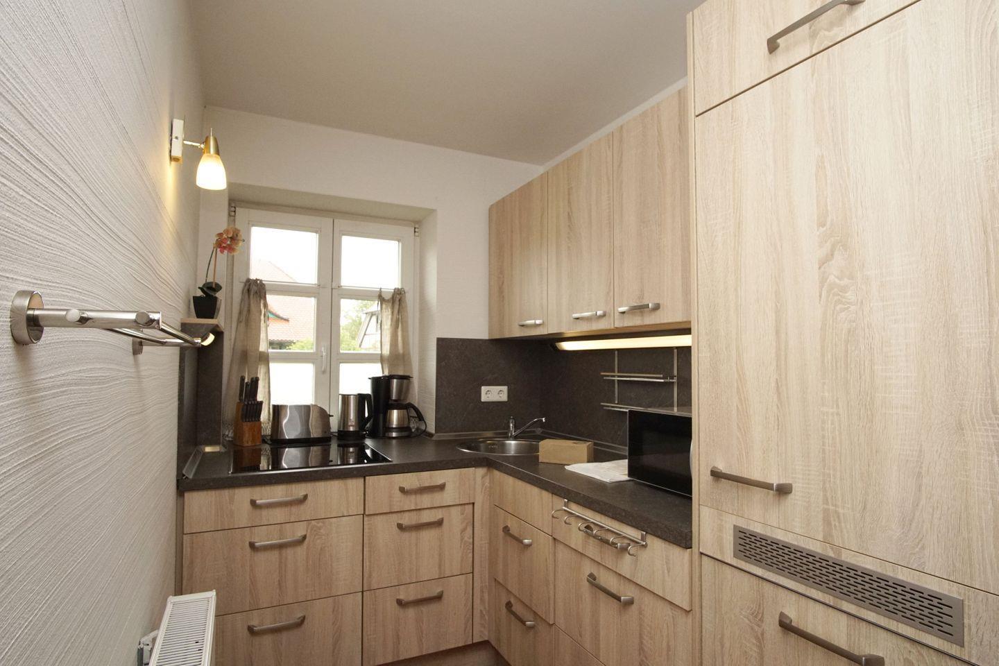 KÜCHE // mit Cerankochfeld, Kühlschrank, Mikrowelle, Geschirrspüler, Toaster, Wasserkocher, Kaffeemaschine, reichlich Besteck, Geschirr und Küchenutensilien ++