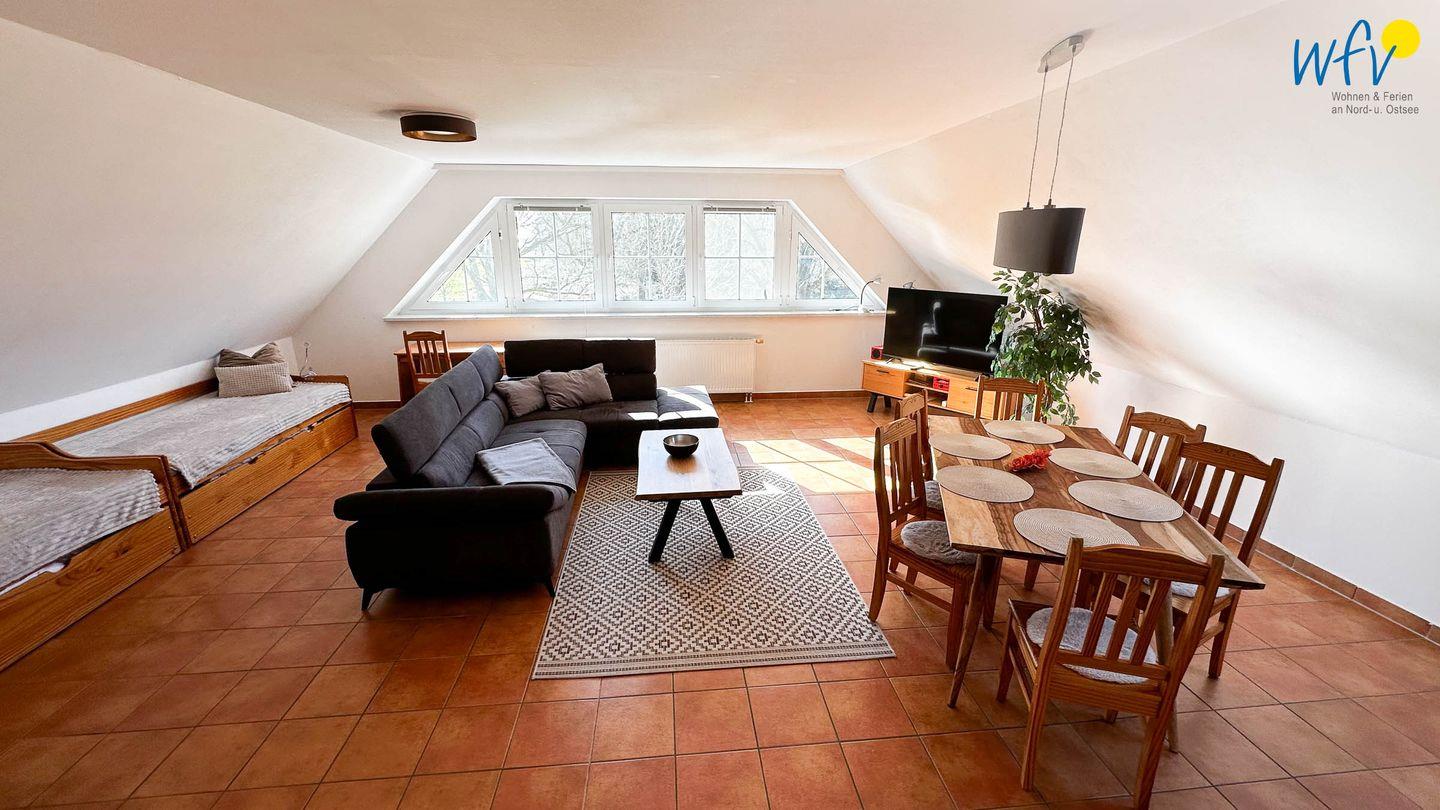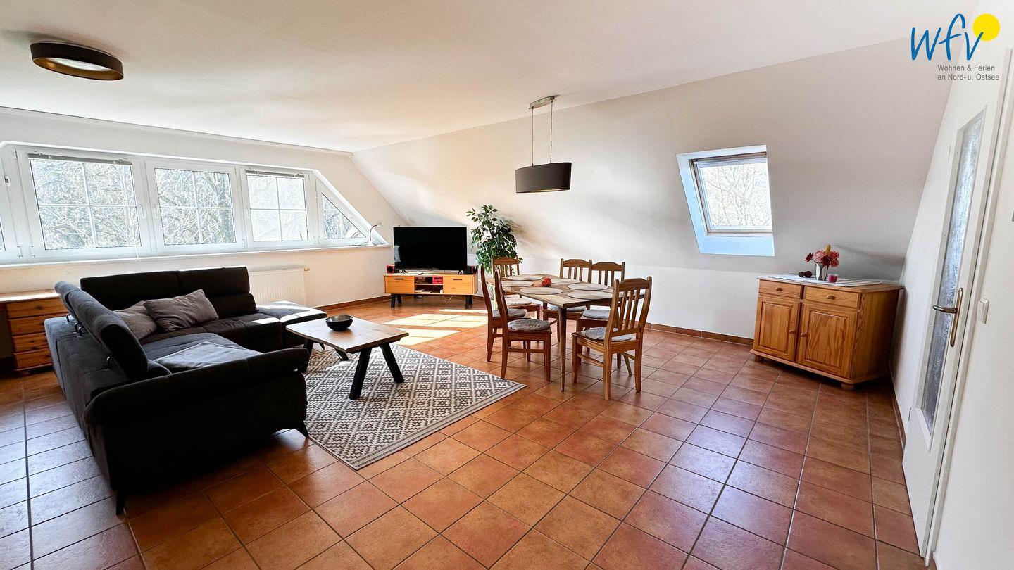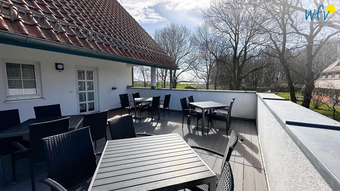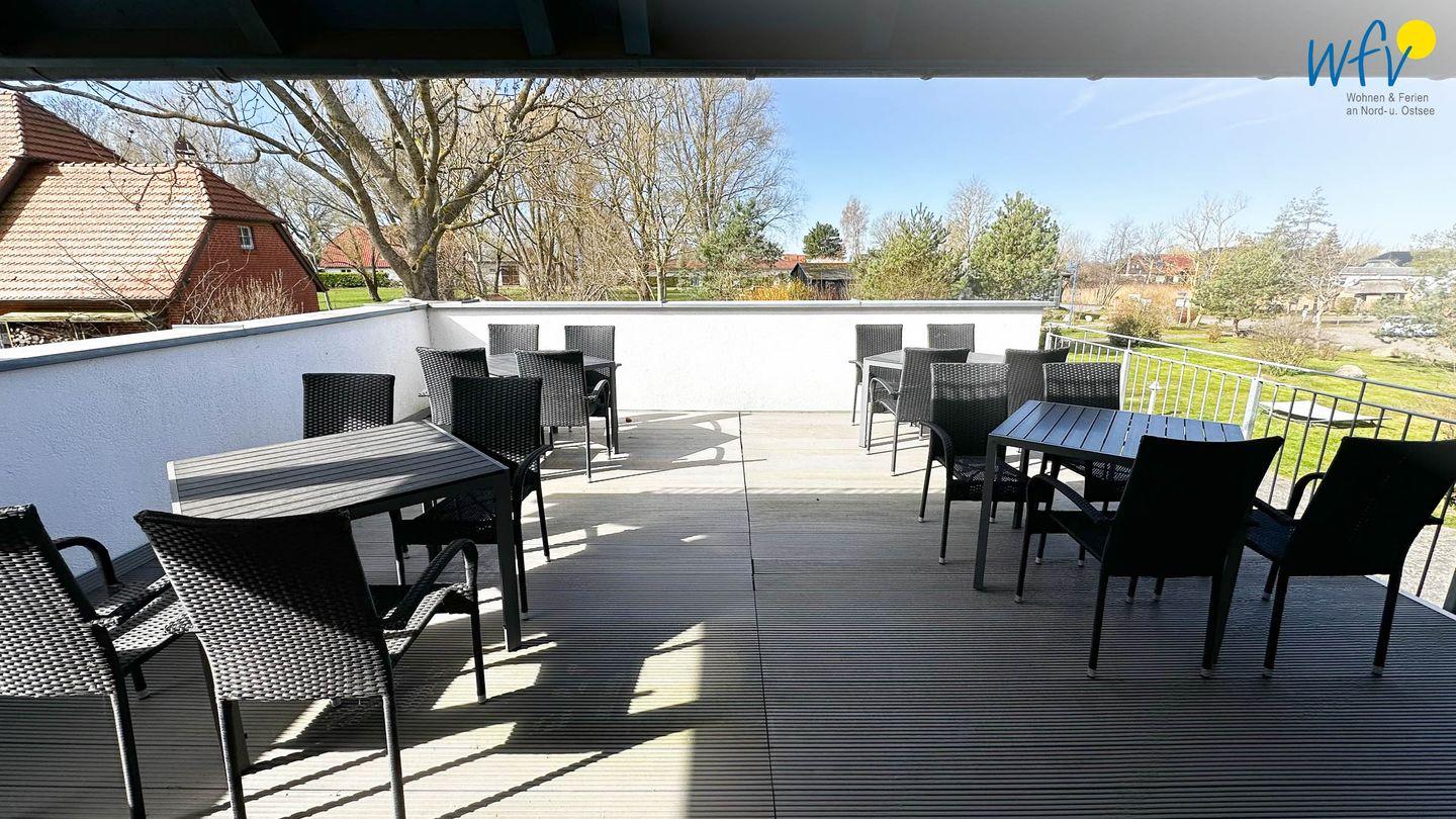 Auf der großen überdachten Gemeinschaftsterrasse können Sie in vollen Zügen die wohltuende Ostseeluft genießen. Auch der Garten mit Grillplatz lädt zum Entspannen und Verweilen ein.