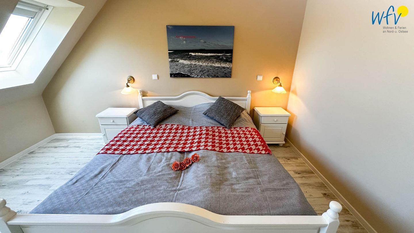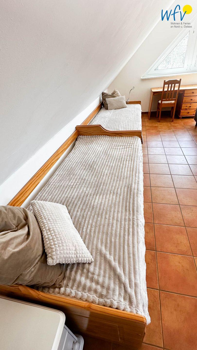 Wenn auf Rügen die Sonne untergeht, bieten Ihnen die zwei separaten Schlafzimmer einen gemütlichen Rückzugsort. Die Zimmer sind jeweils mit einem bequemen Doppelbett ausgestattet (180 x 200 cm bzw. 2 x 80 cm x 200 cm). Zwei weitere Personen finden in den Einzelbetten im Wohnraum Platz (2 x 90 cm x 200 cm).